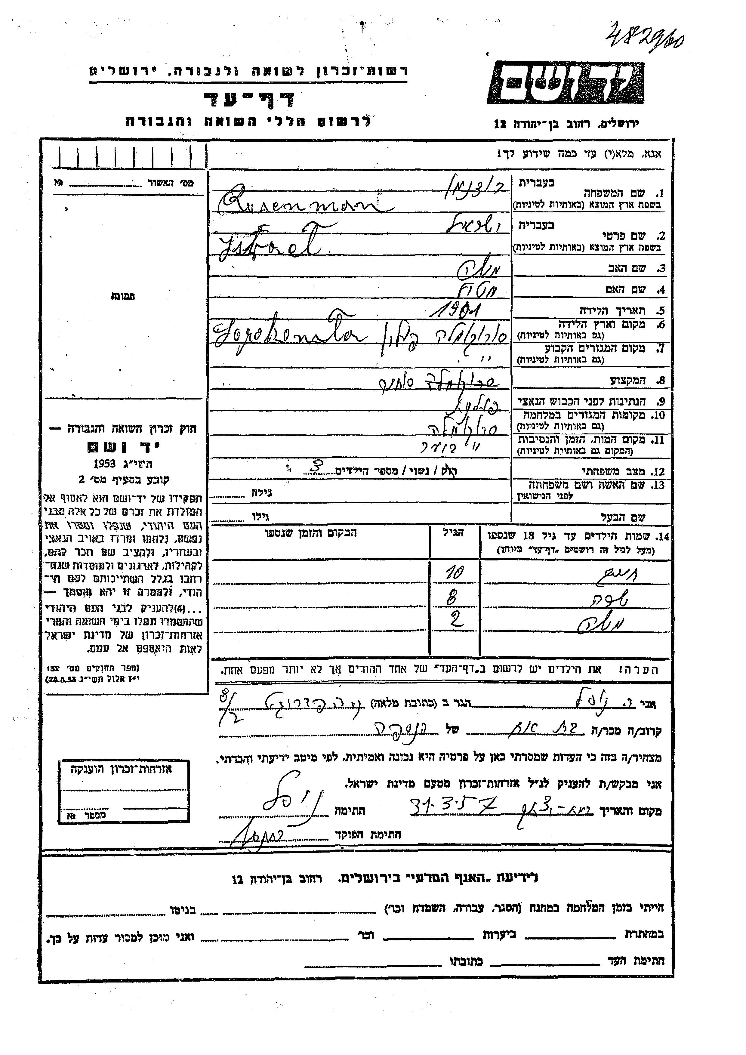 Yad Vashem - Pages of Testimony Names Memorial Collection