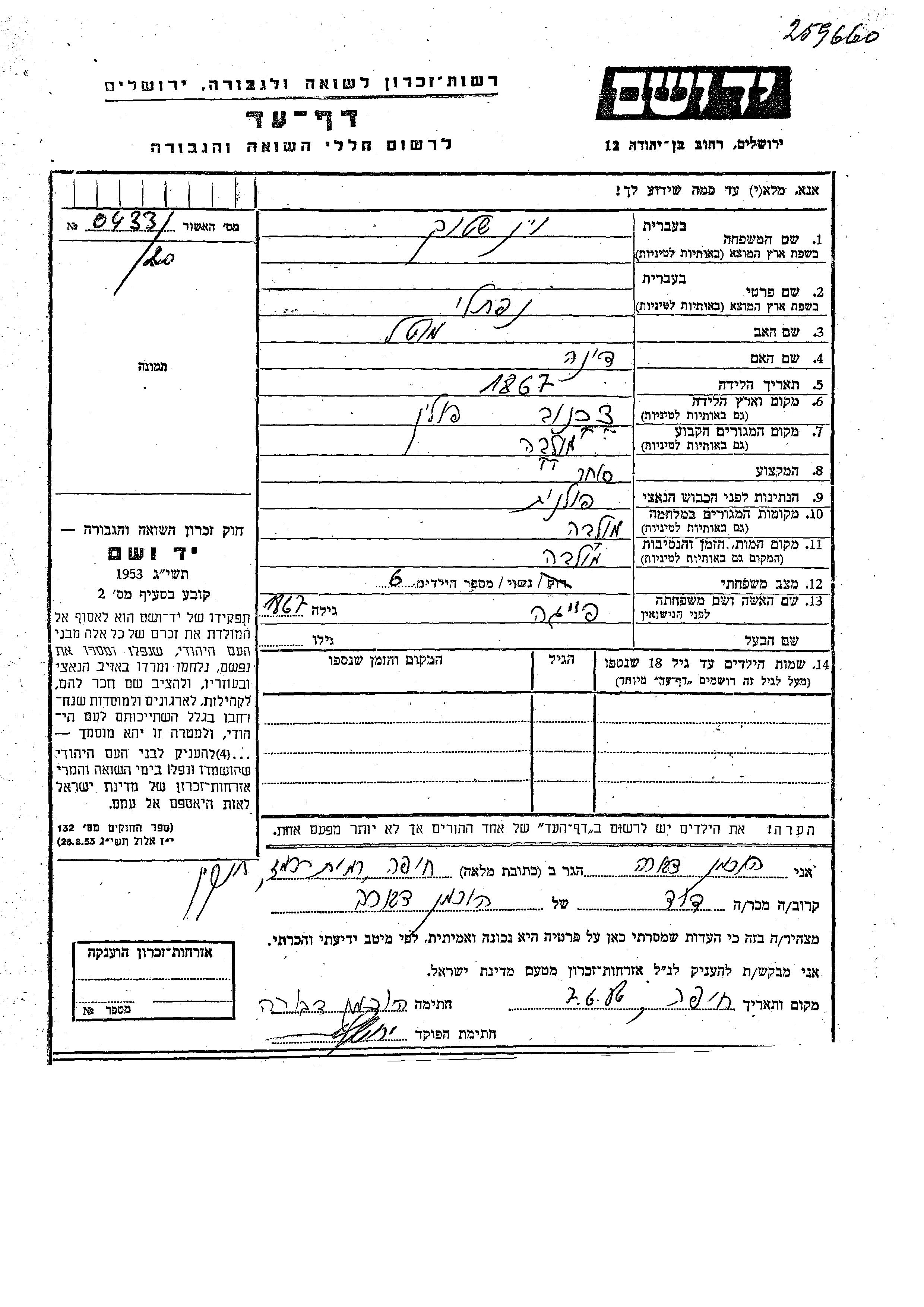 Yad Vashem - Pages of Testimony Names Memorial Collection