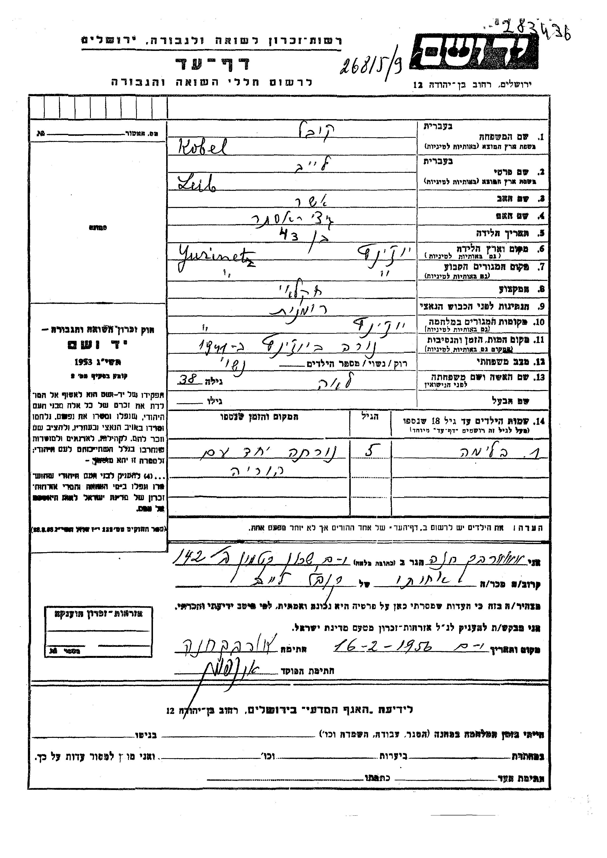 Kobel Kubel Blima Ujnemet, Roumanie Feuille de témoignage