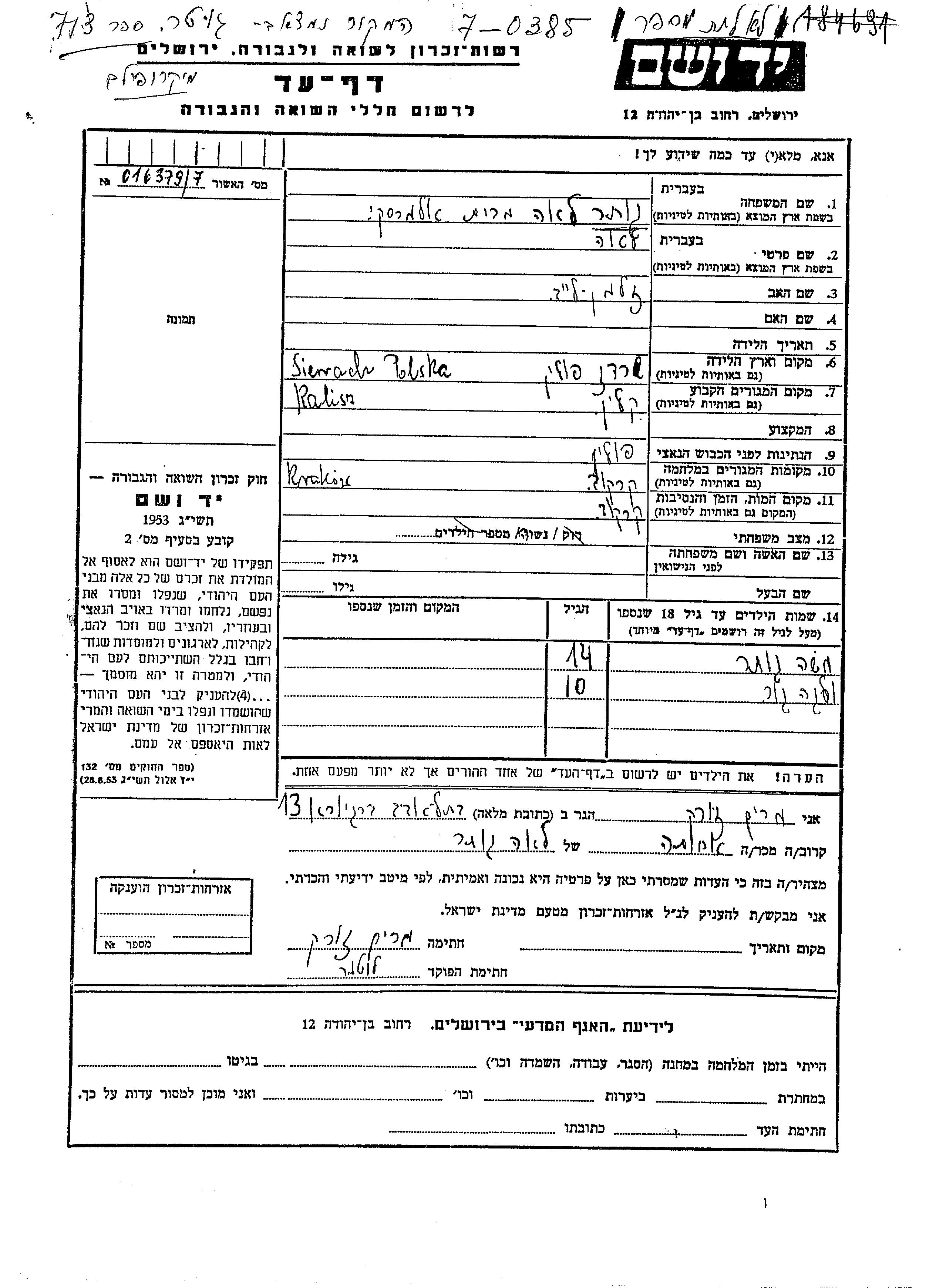 Yad Vashem - Pages of Testimony Names Memorial Collection