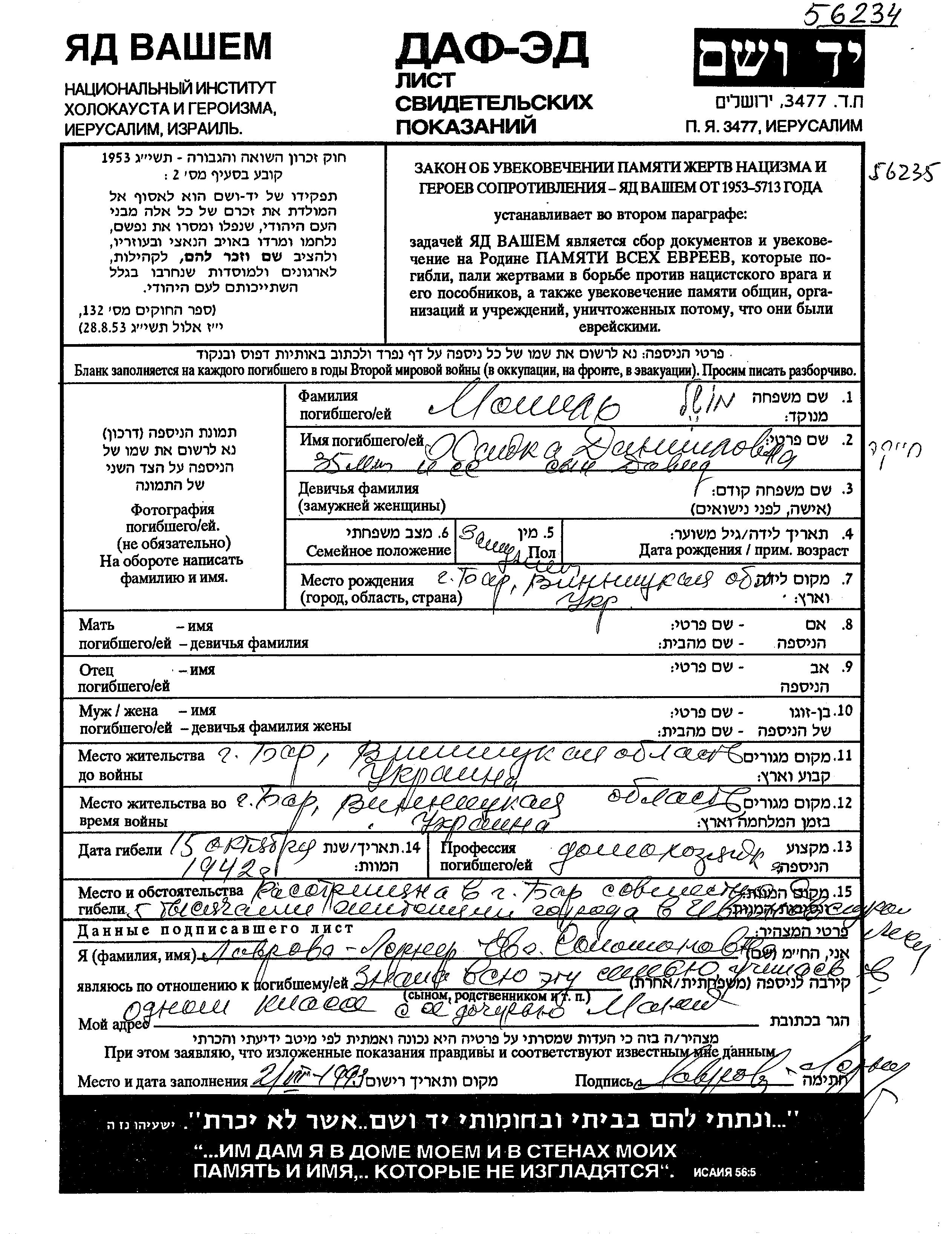 Yad Vashem - Pages of Testimony Names Memorial Collection