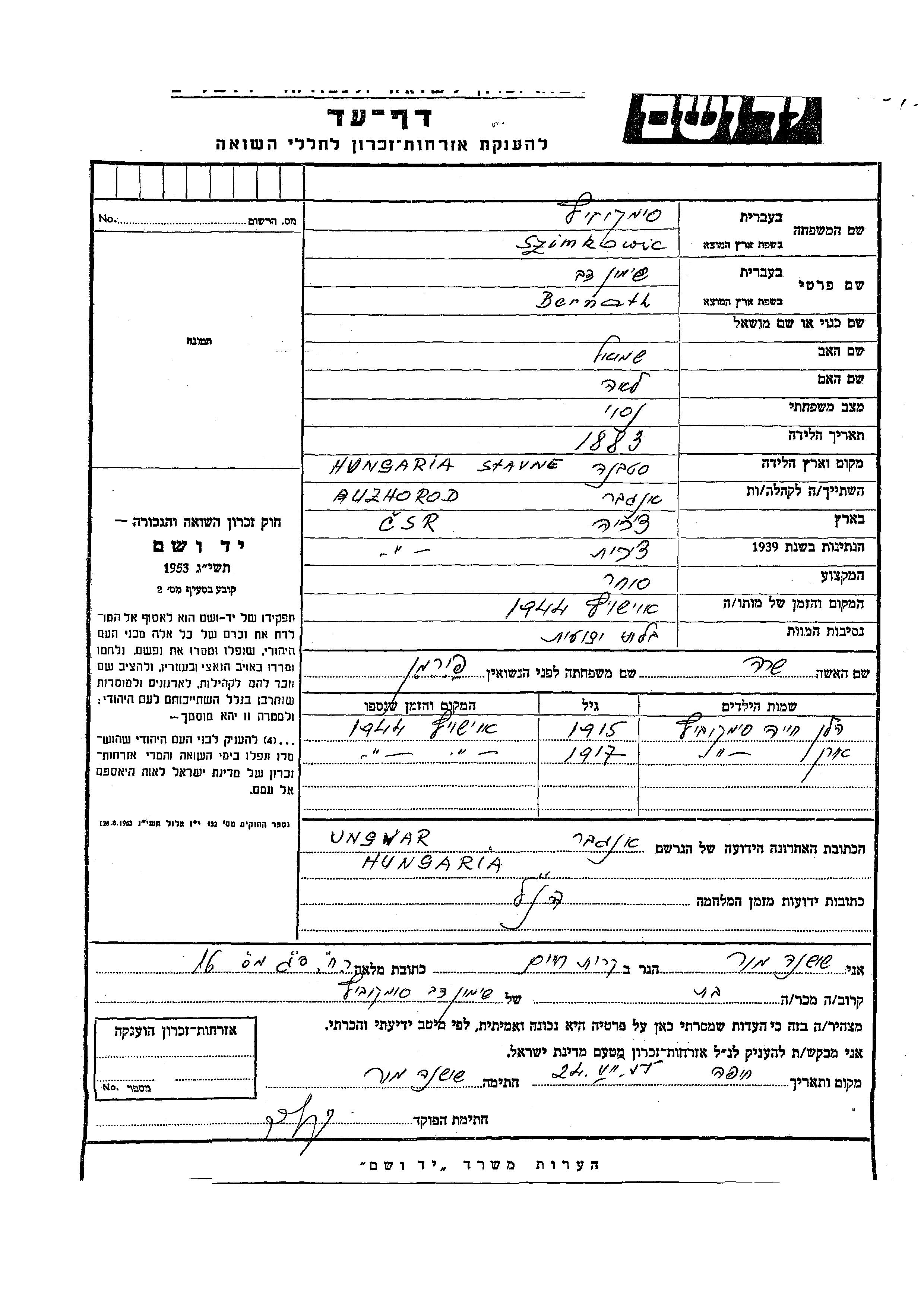 Yad Vashem - Pages of Testimony Names Memorial Collection