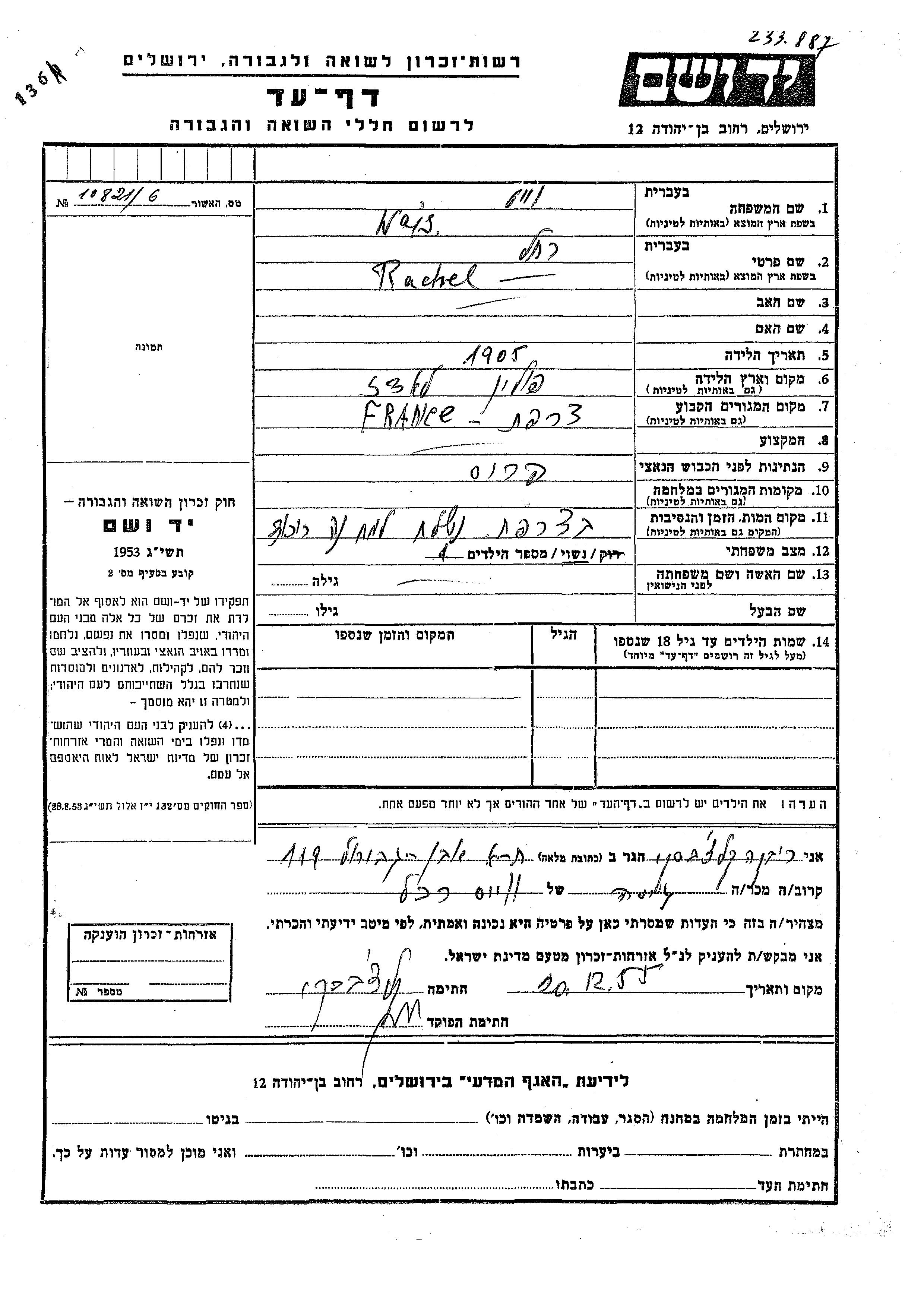 Recherche par lieu de résidence permanente avant la Shoah, ville, village, département, région ou pays.