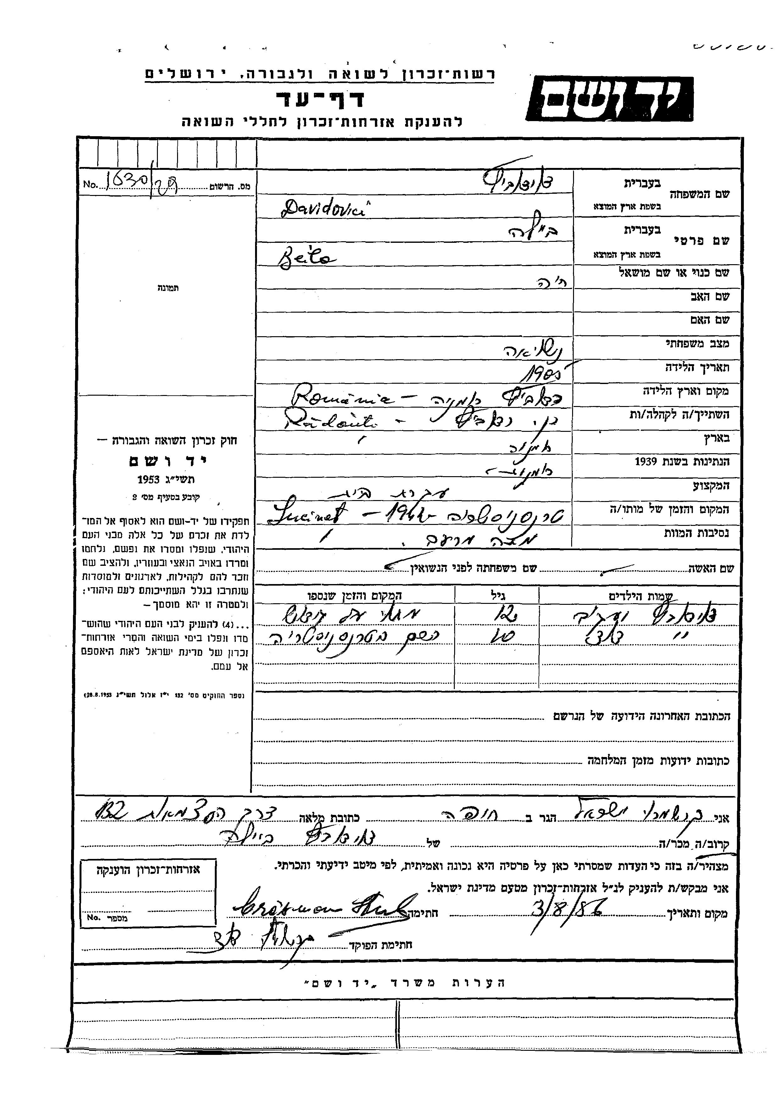 Yad Vashem - Pages of Testimony Names Memorial Collection