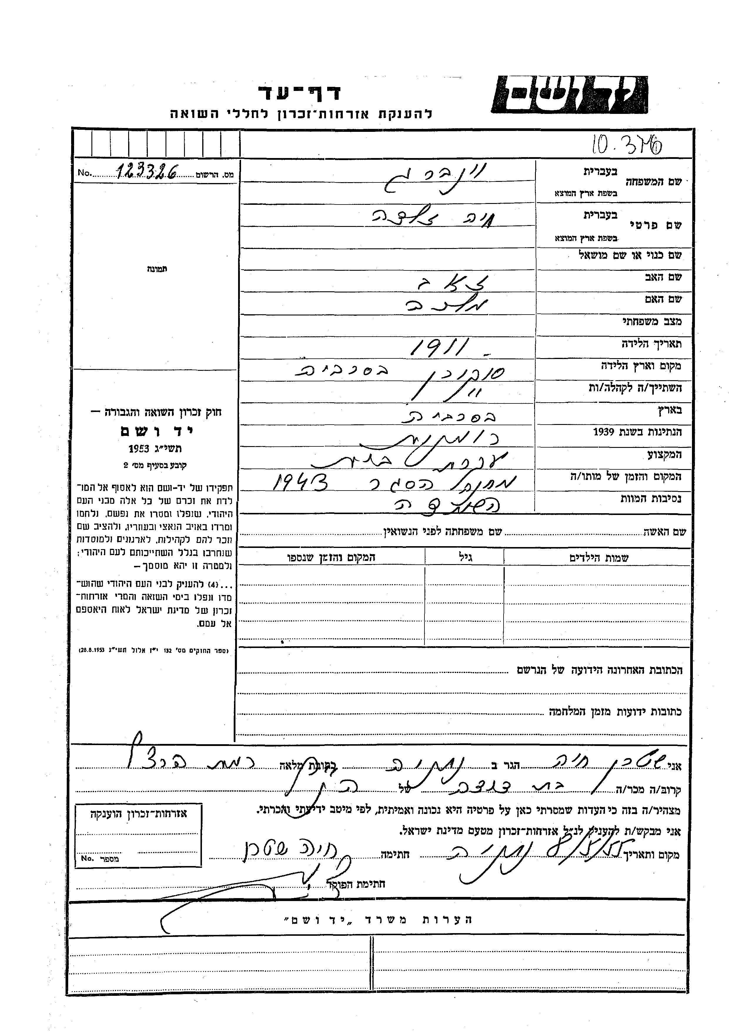 Yad Vashem - Pages of Testimony Names Memorial Collection