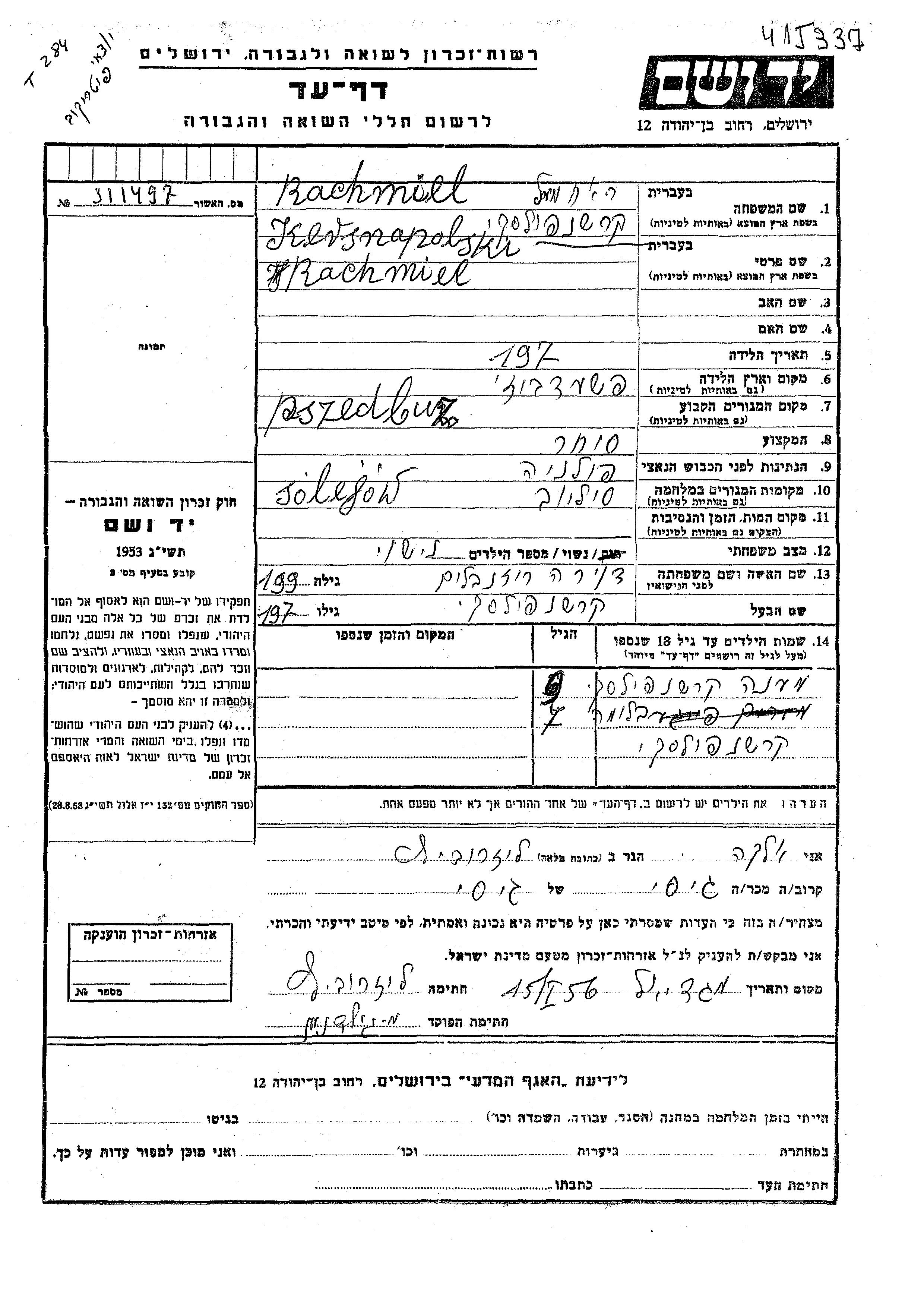 Yad Vashem - Pages of Testimony Names Memorial Collection