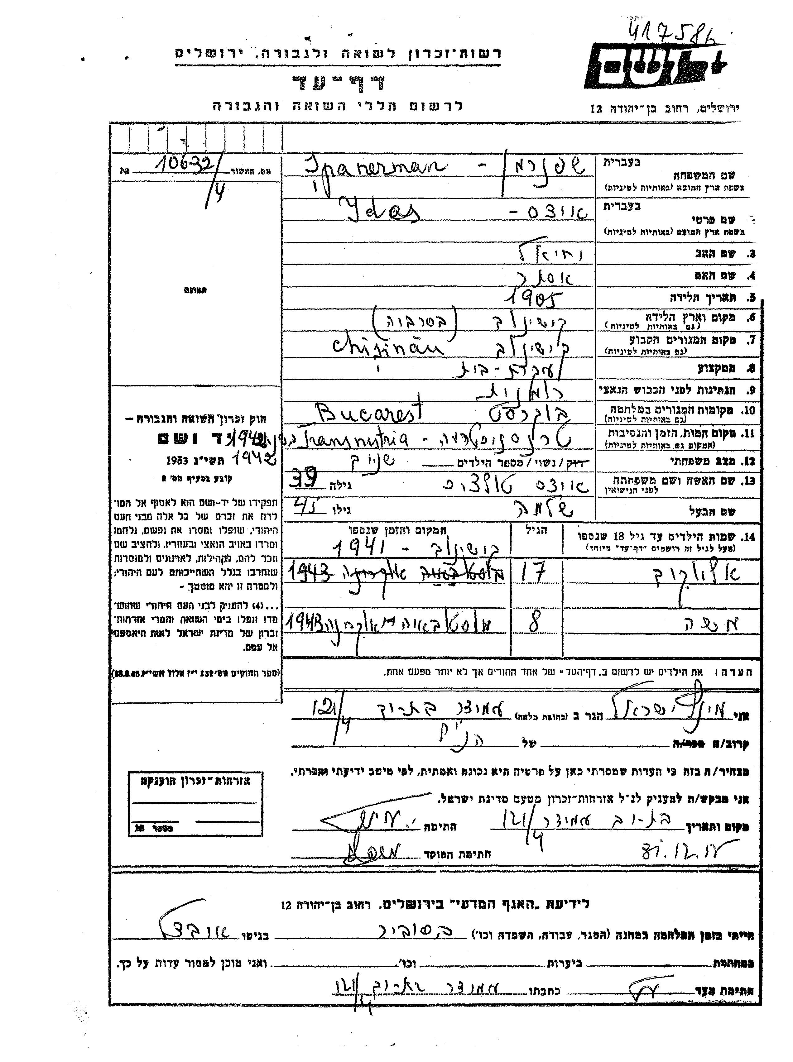 Yad Vashem - Pages of Testimony Names Memorial Collection