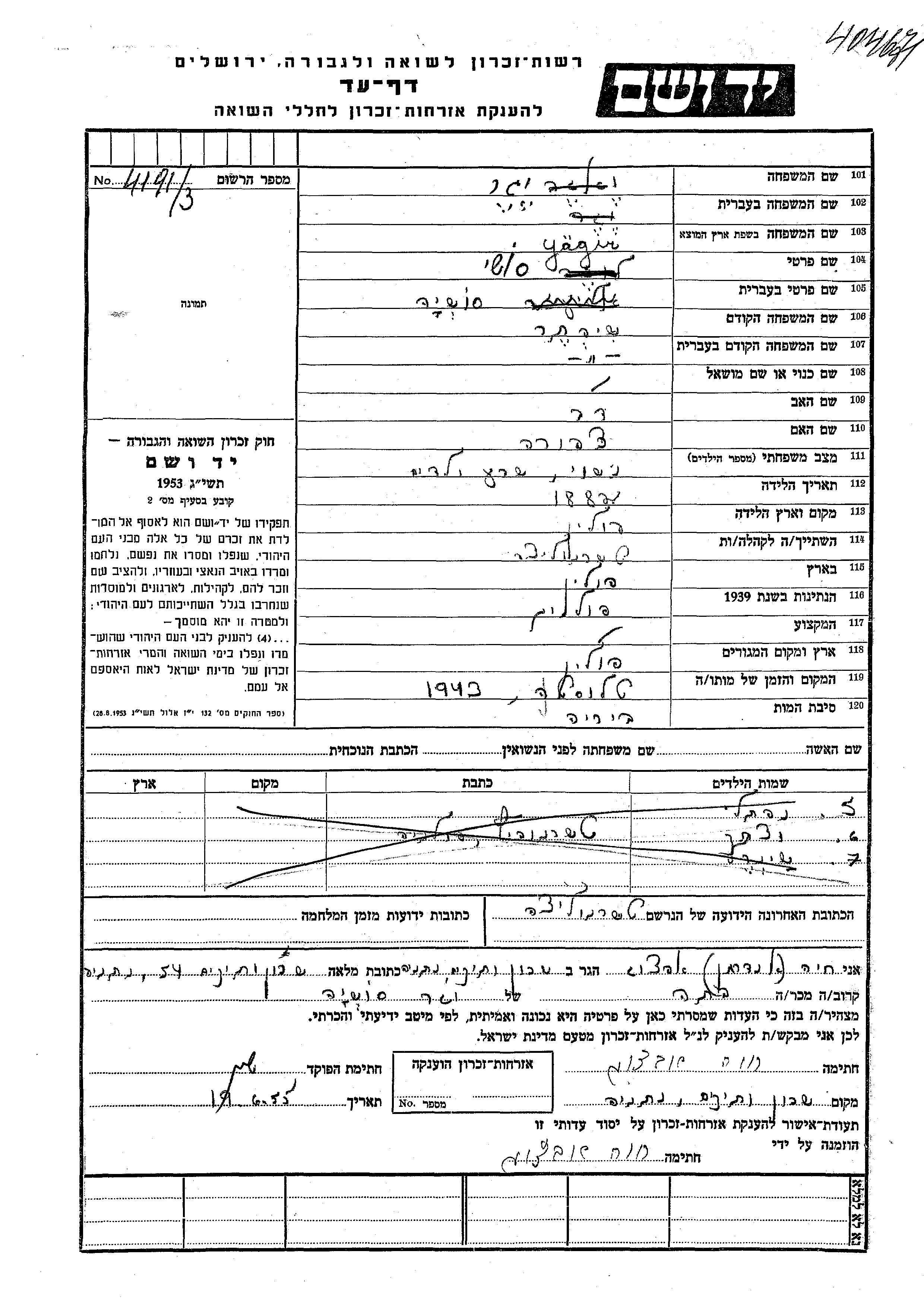 Yad Vashem - Pages of Testimony Names Memorial Collection