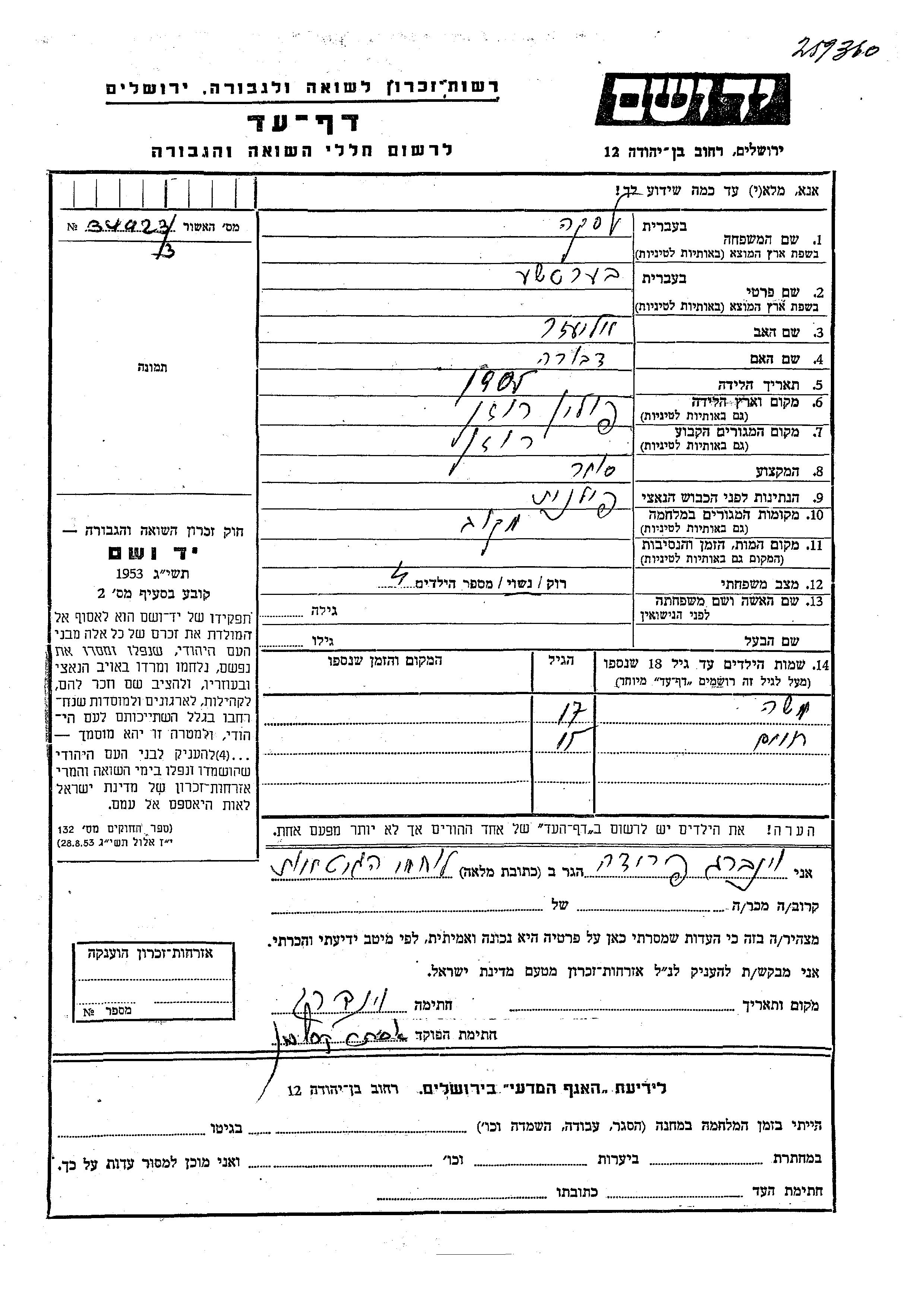 Yad Vashem - Pages of Testimony Names Memorial Collection