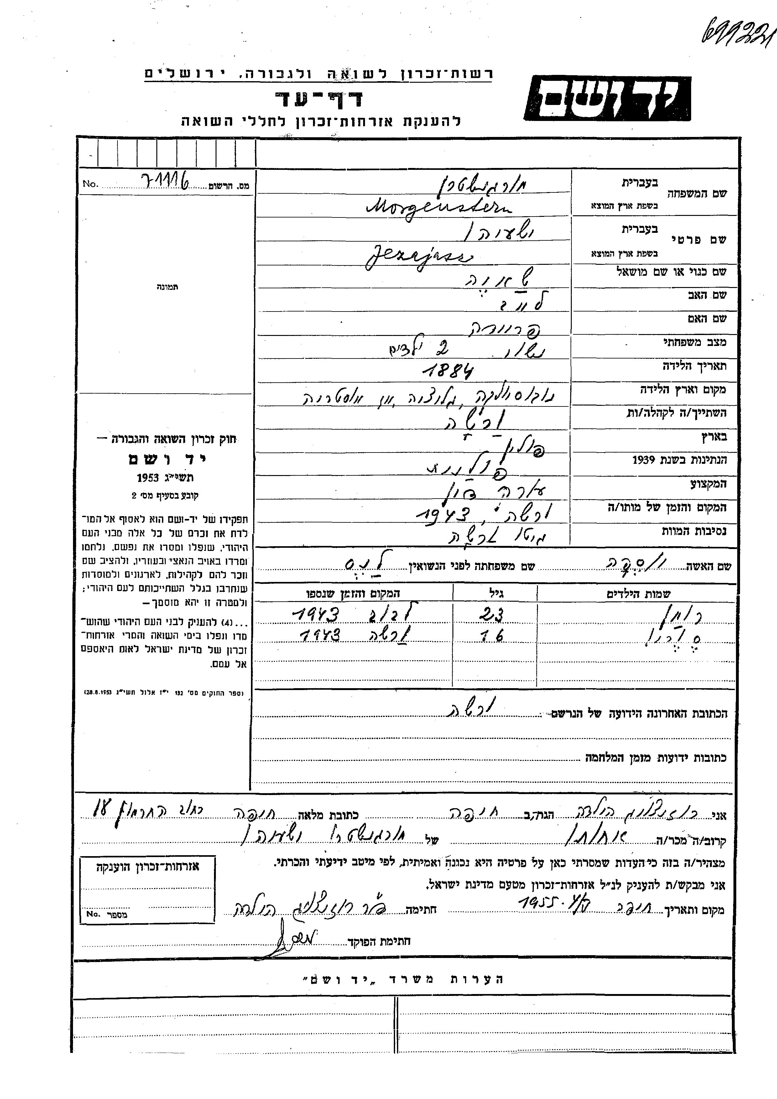 Yad Vashem - Pages of Testimony Names Memorial Collection