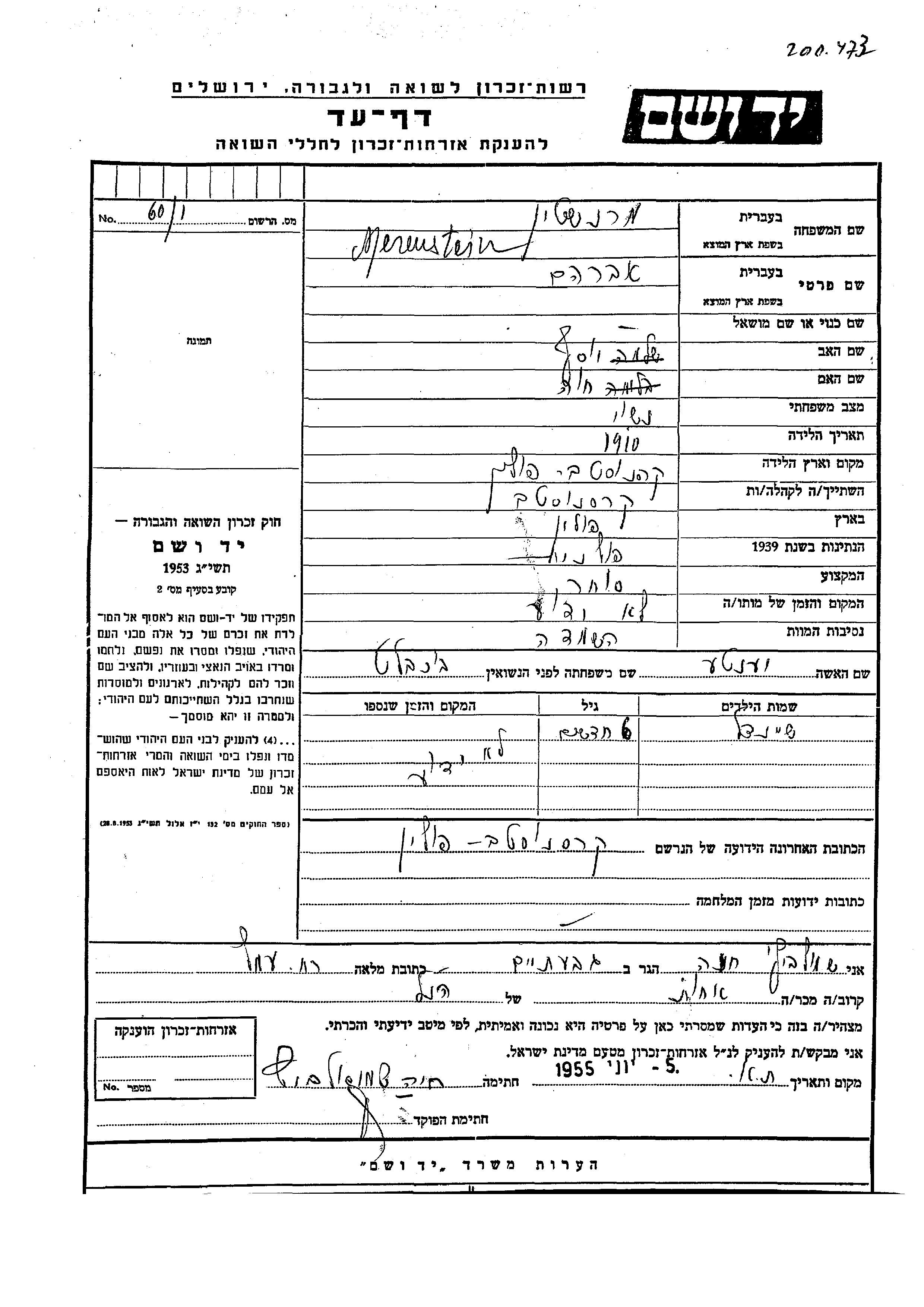 Yad Vashem - Pages of Testimony Names Memorial Collection