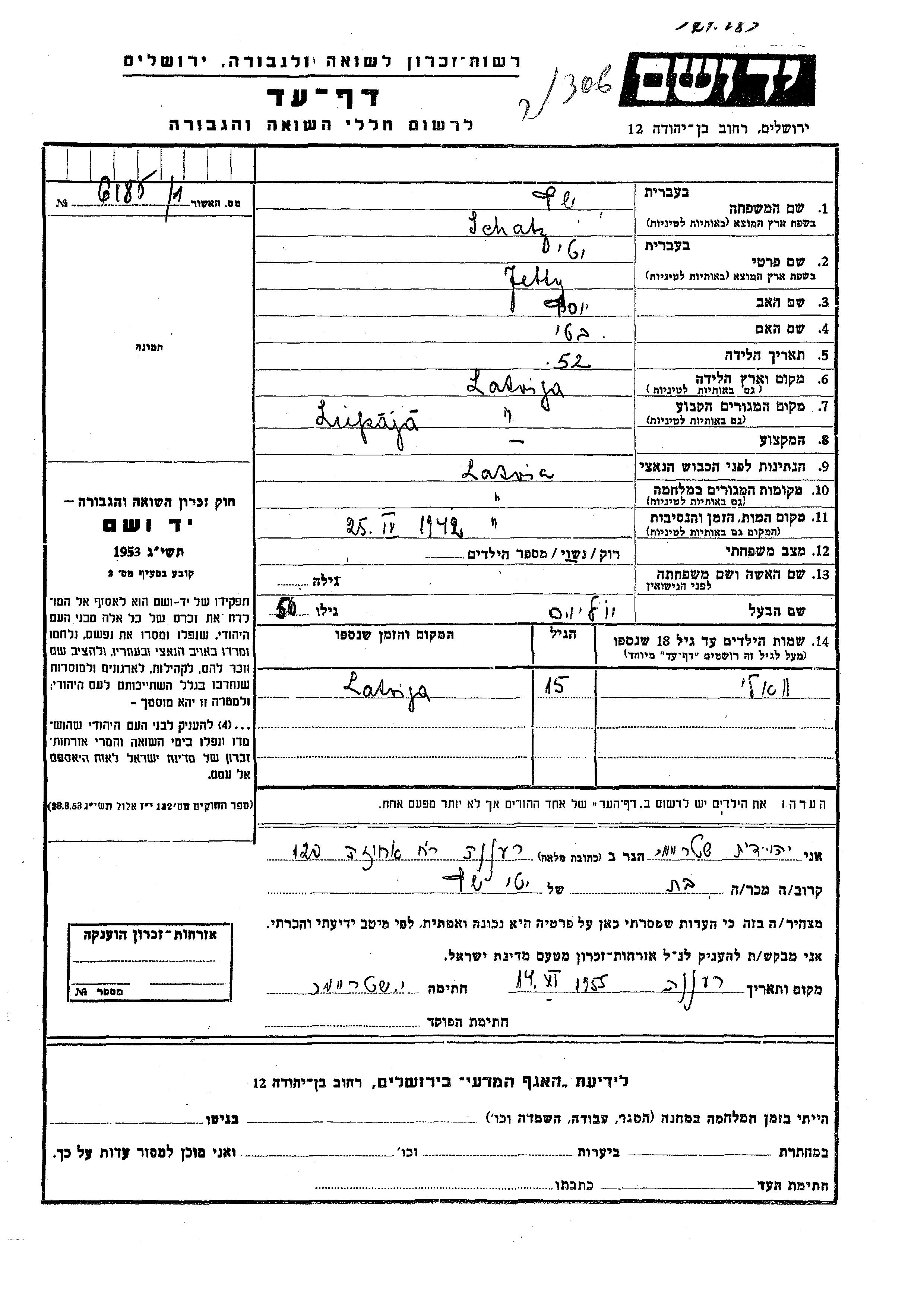 Yad Vashem - Pages of Testimony Names Memorial Collection