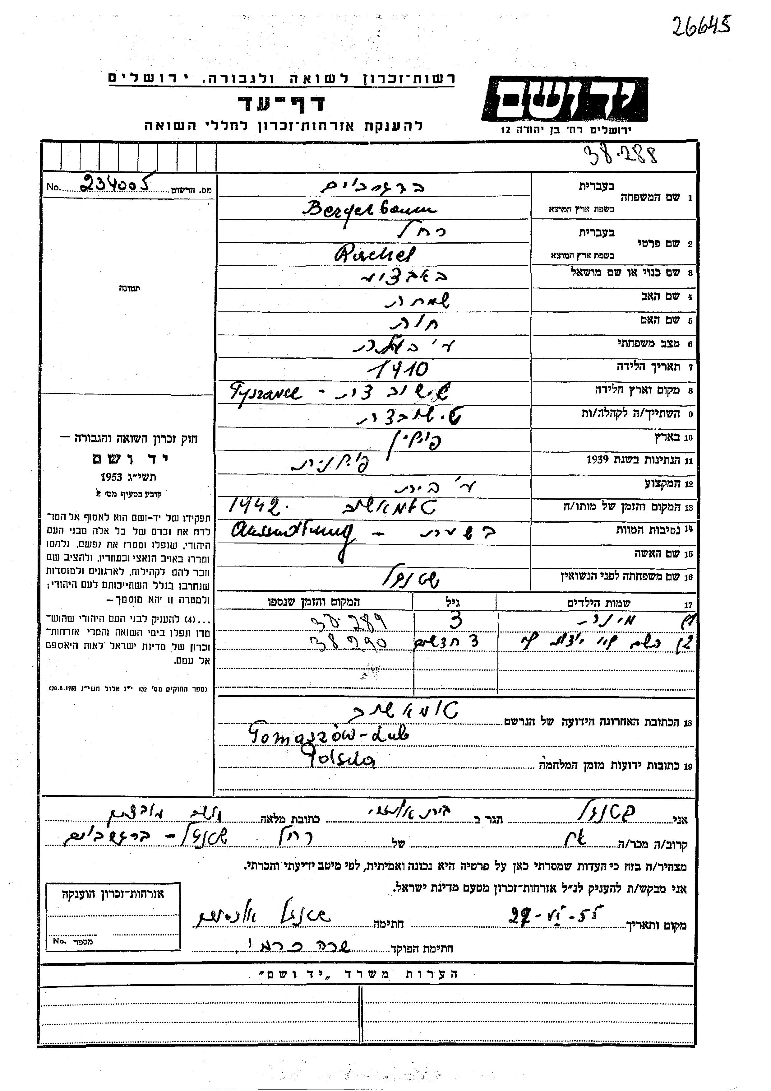 Yad Vashem - Pages of Testimony Names Memorial Collection