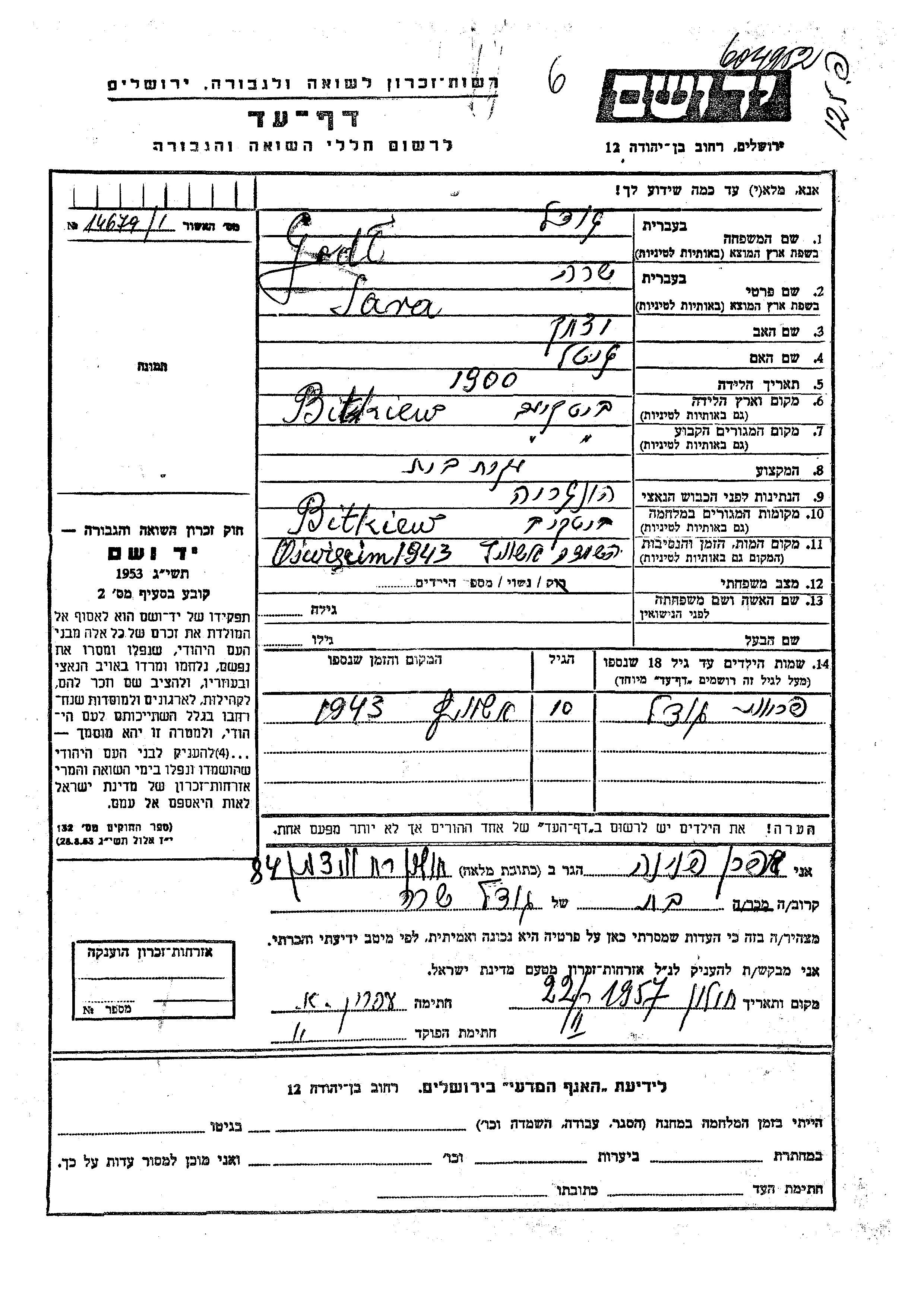 Recherche par date de la mort pendant la période de la Shoah: 1933-1945. Sélectionnez 'Exact'; dans la liste pour rechercher l'année exacte, ou sélectionner '+/- 2 ans'; ou '+/- 5 ans