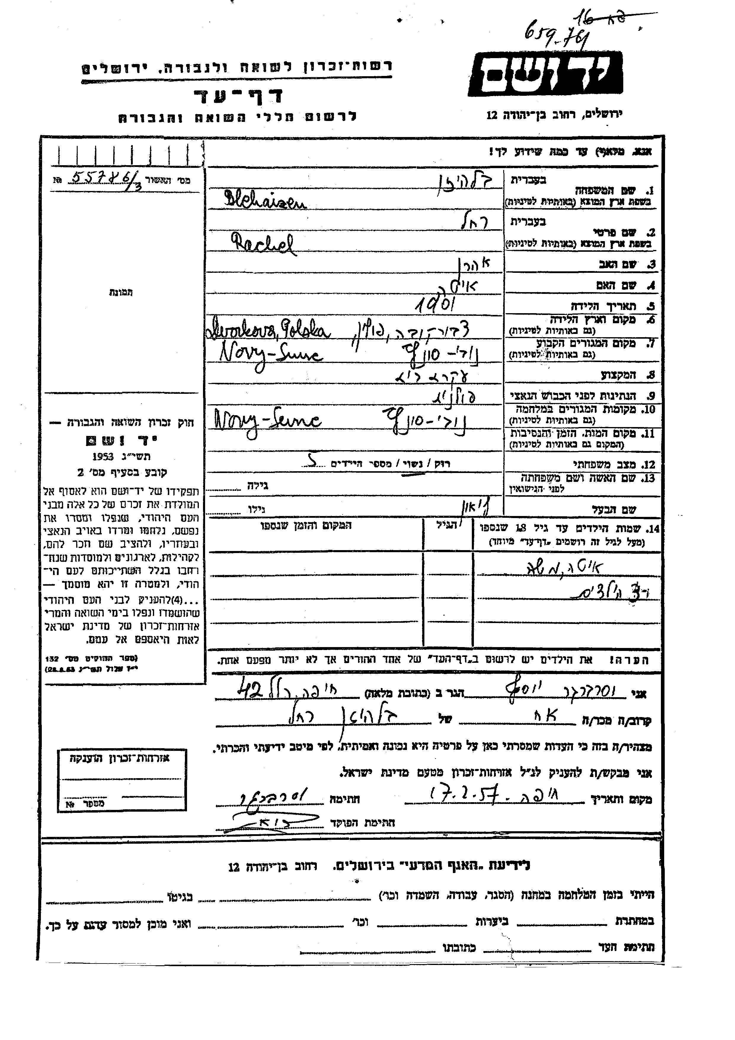 Yad Vashem - Pages of Testimony Names Memorial Collection