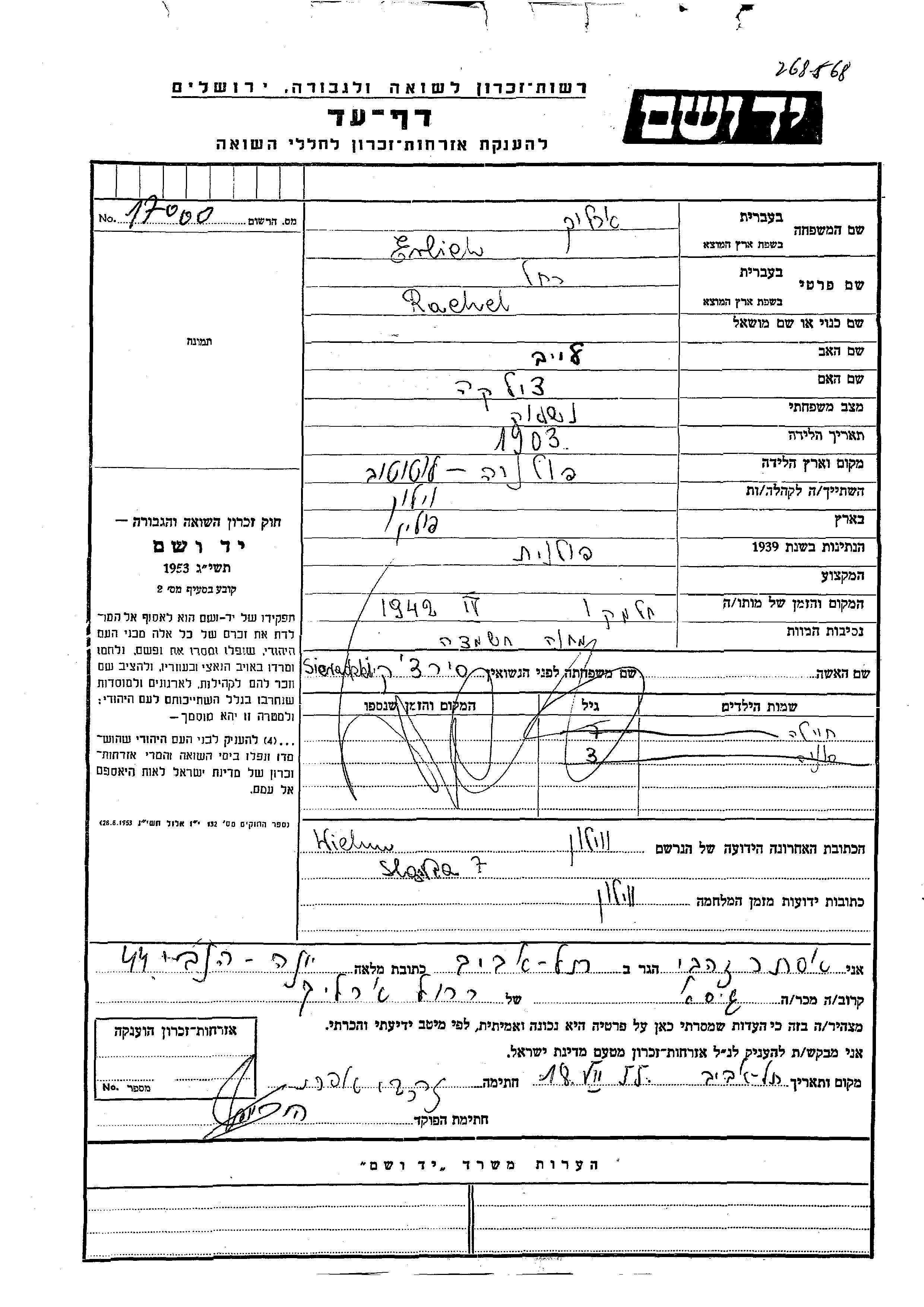 Yad Vashem - Pages of Testimony Names Memorial Collection