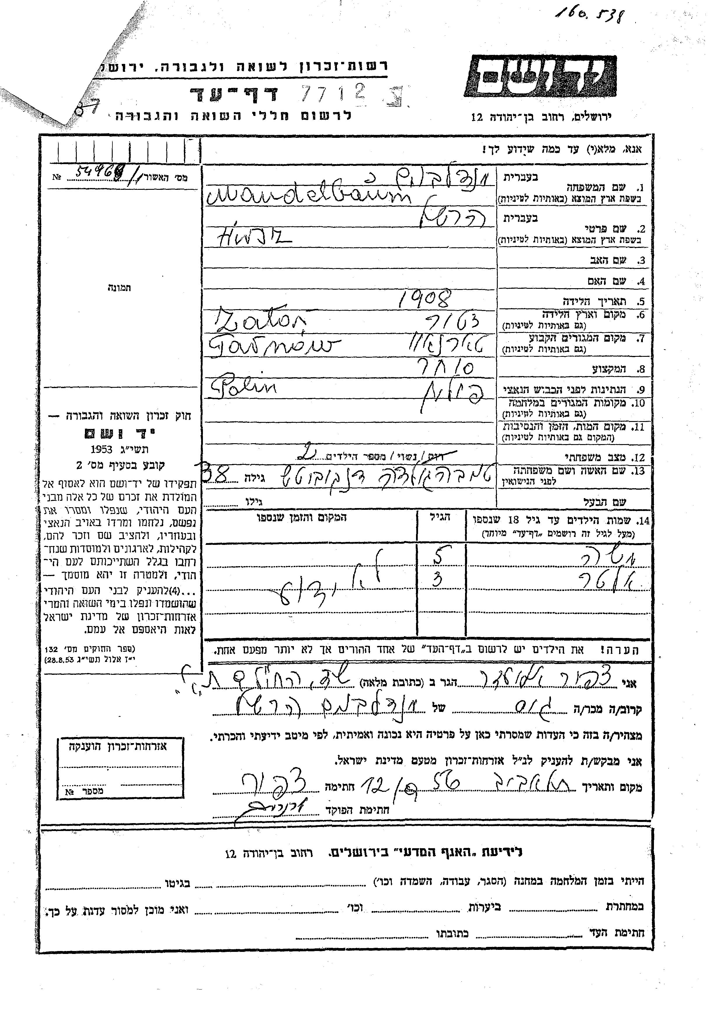 Mandelbaum Moshe Zator, Pologne Feuille de témoignage