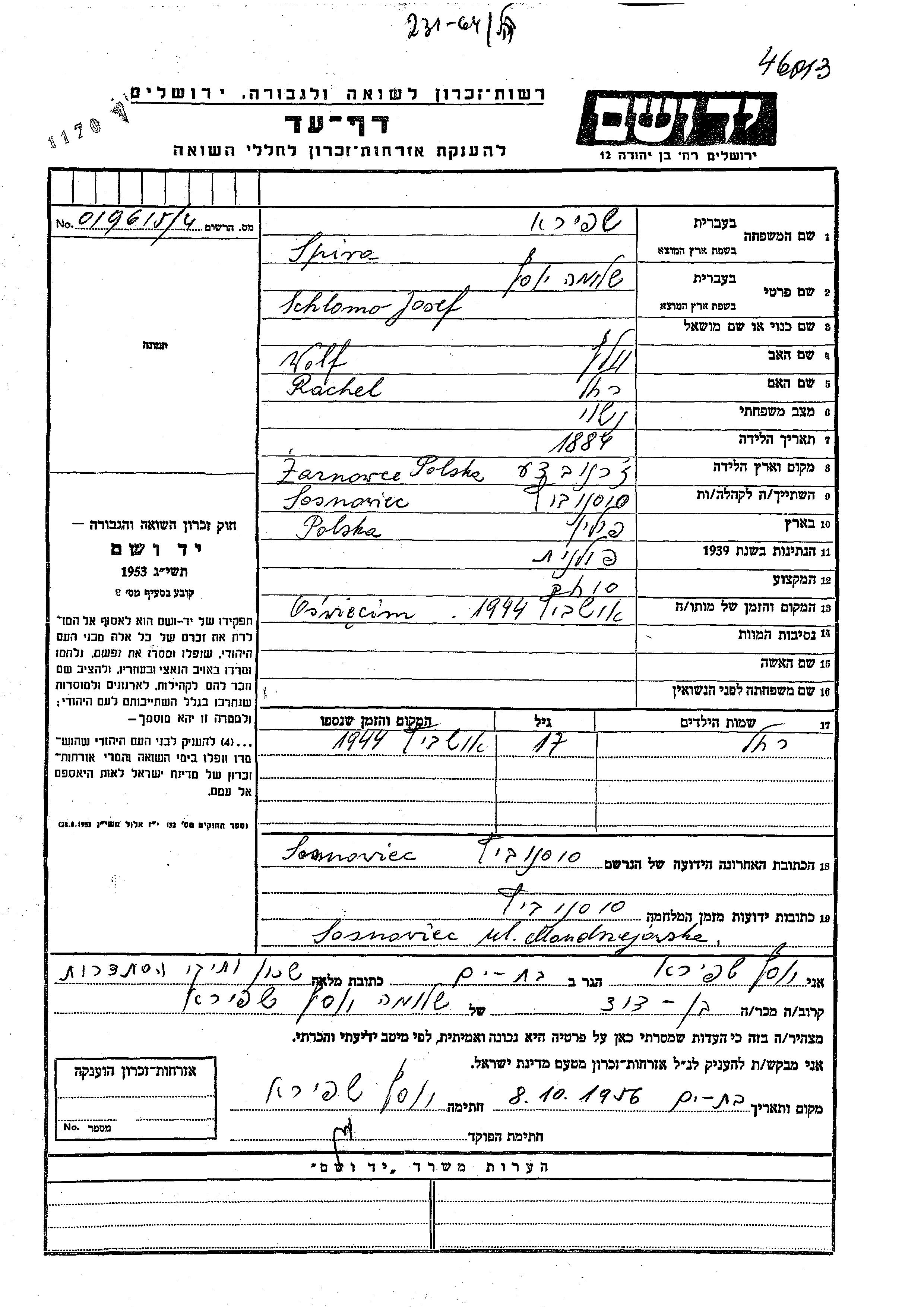 Yad Vashem - Pages of Testimony Names Memorial Collection