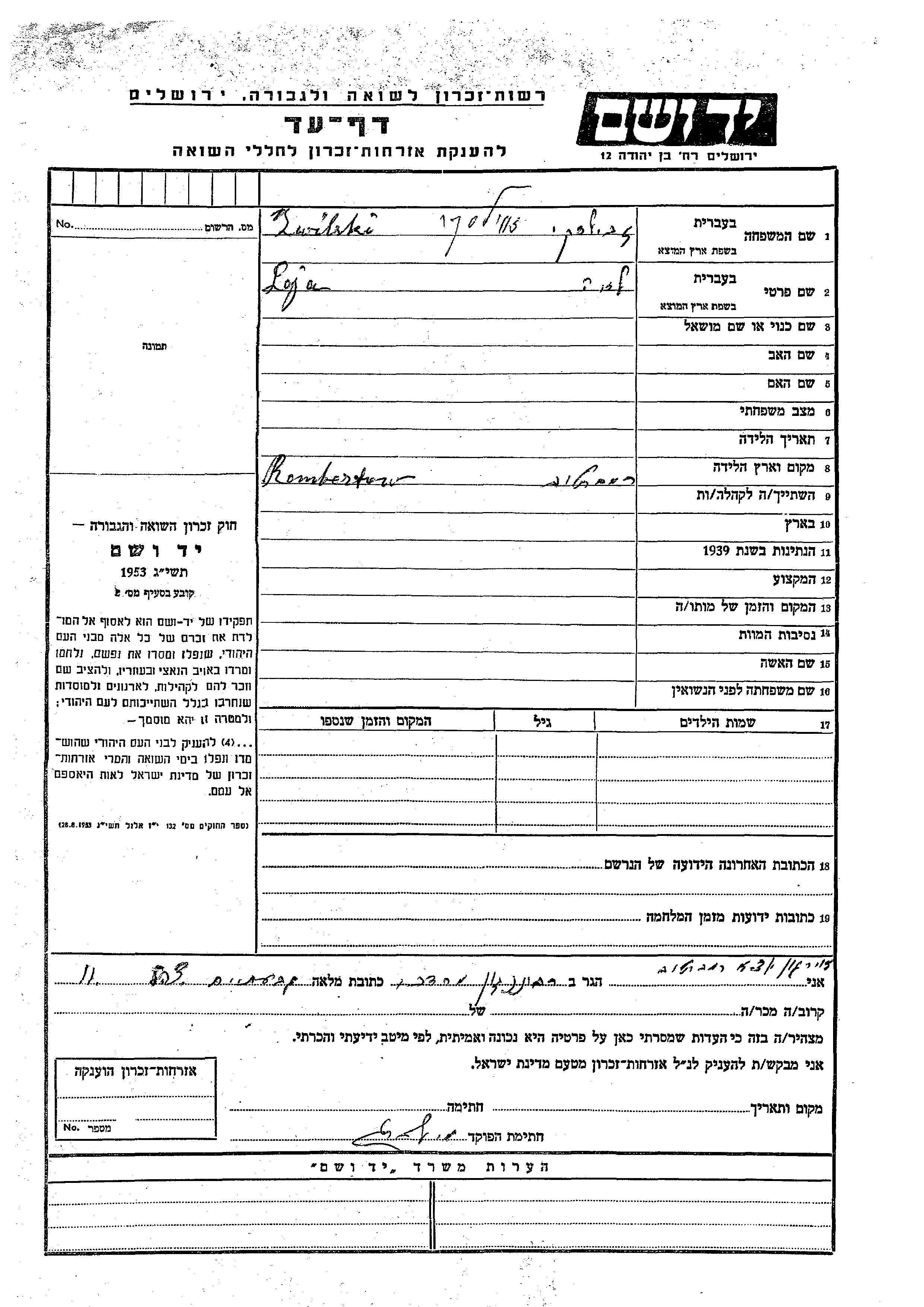 Yad Vashem - Pages of Testimony Names Memorial Collection