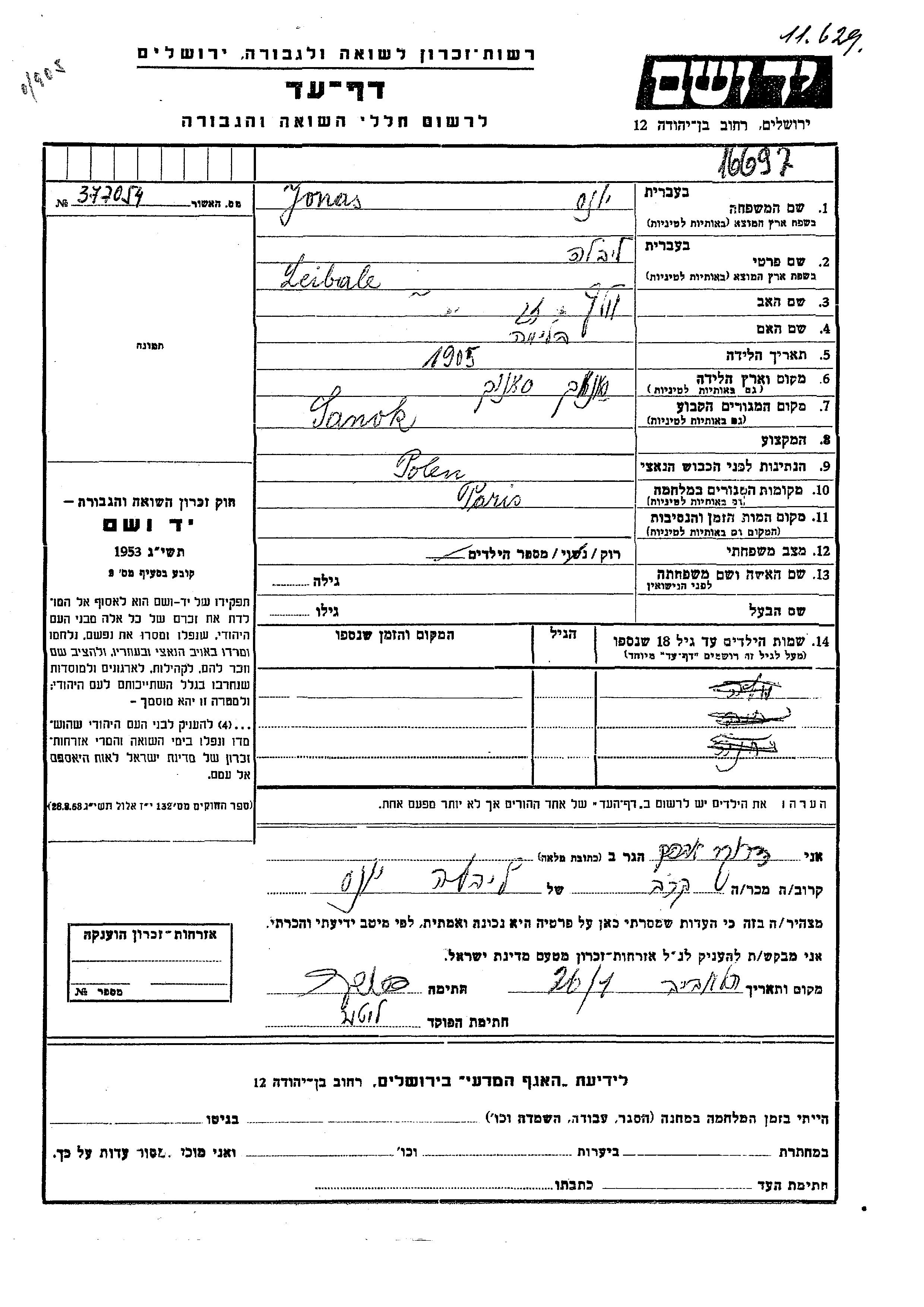 Yad Vashem - Pages of Testimony Names Memorial Collection