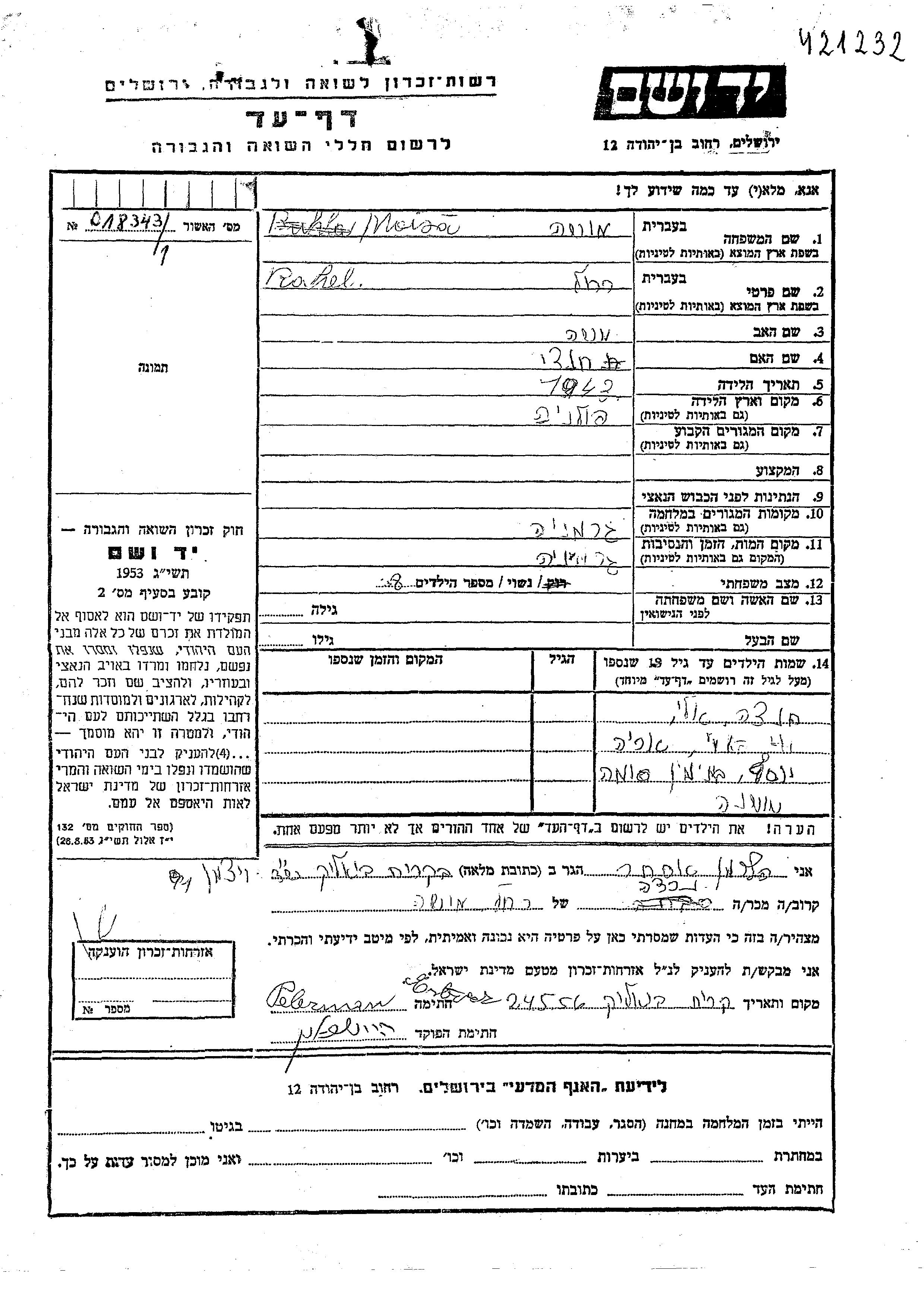 Yad Vashem - Pages of Testimony Names Memorial Collection