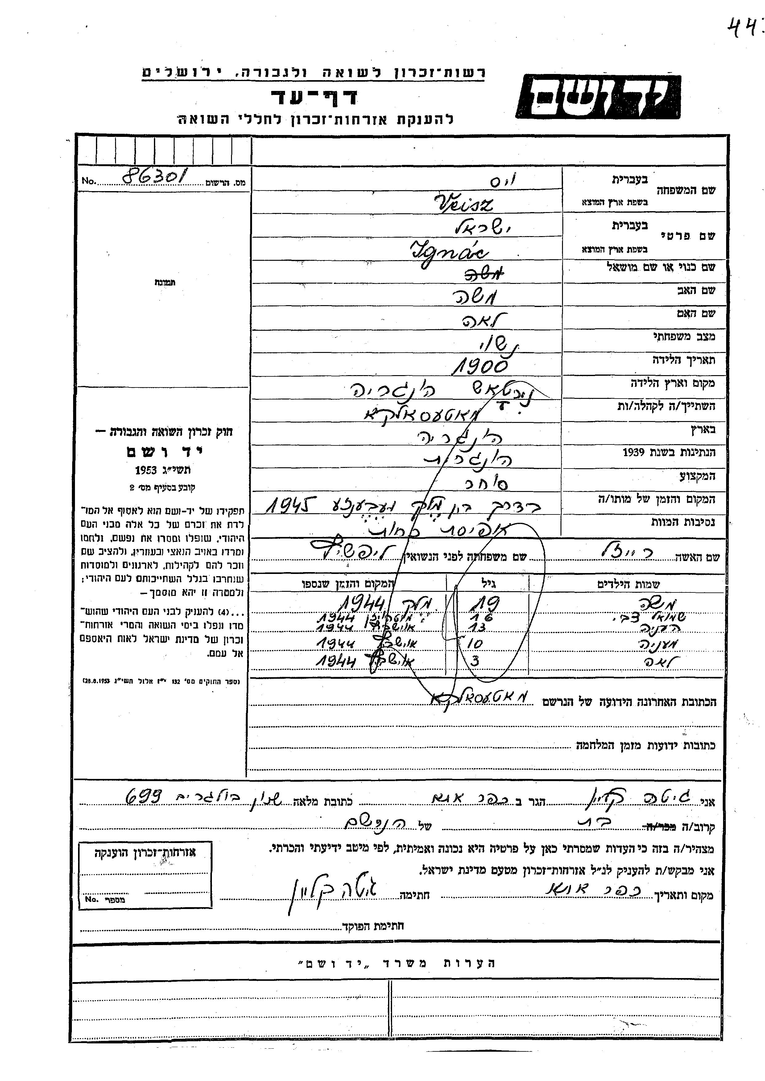 Yad Vashem - Pages of Testimony Names Memorial Collection