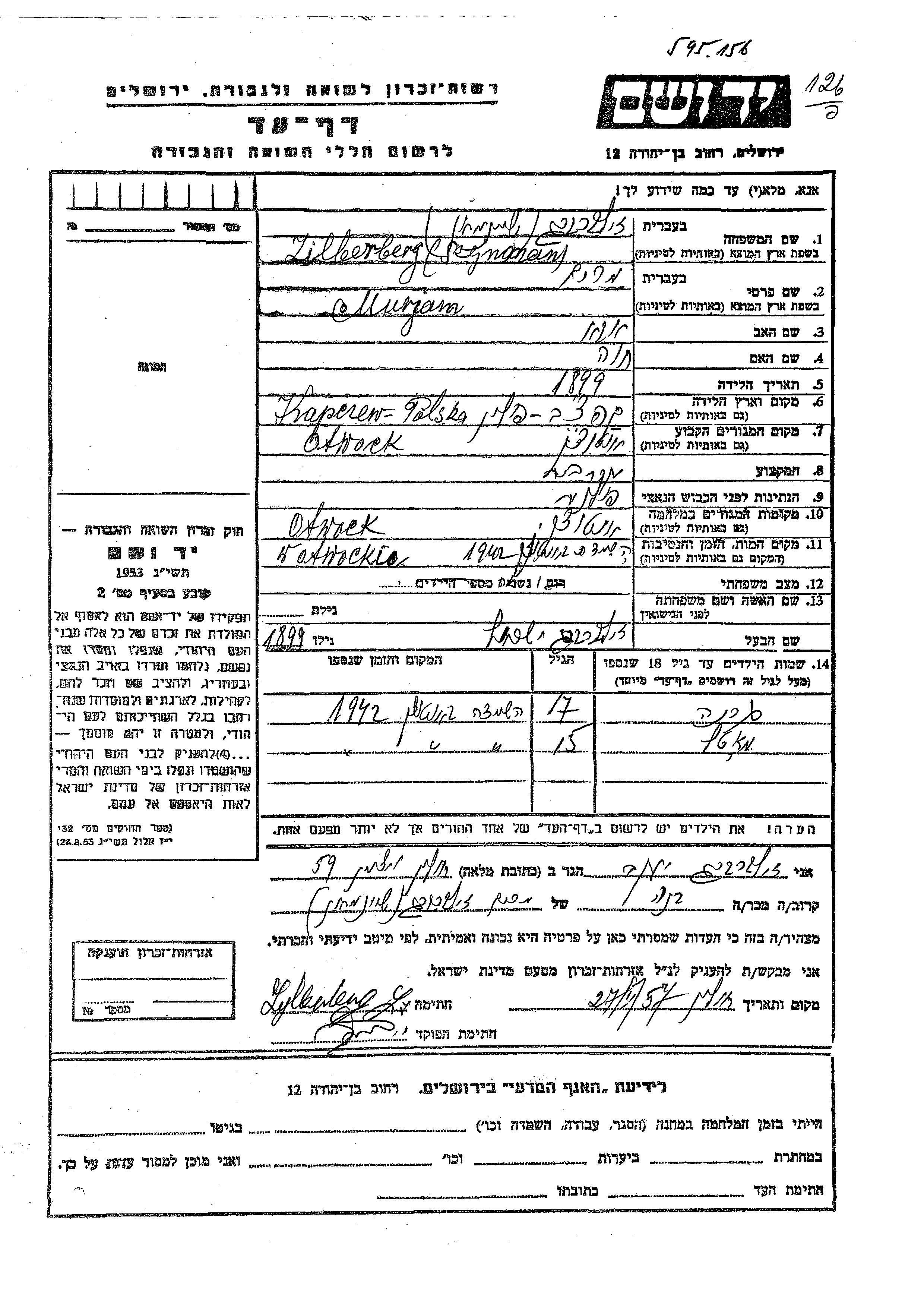 Zilberberg Grena Otwock, Pologne Feuille de témoignage
