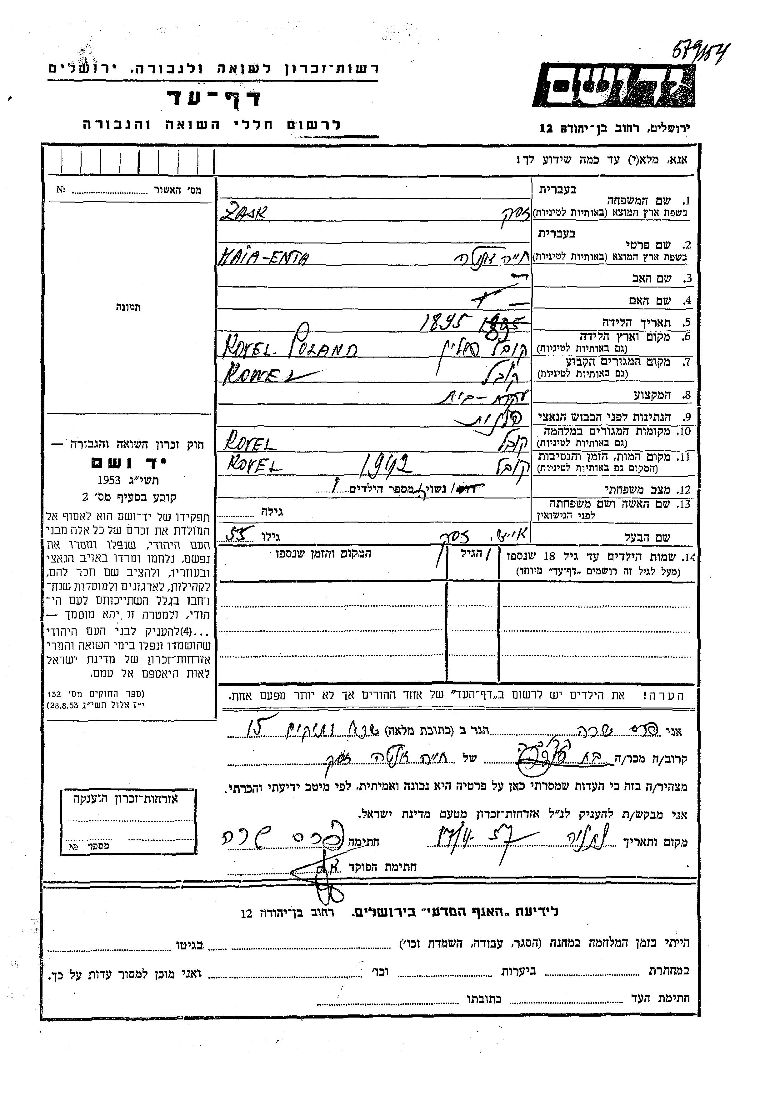 Yad Vashem - Pages of Testimony Names Memorial Collection