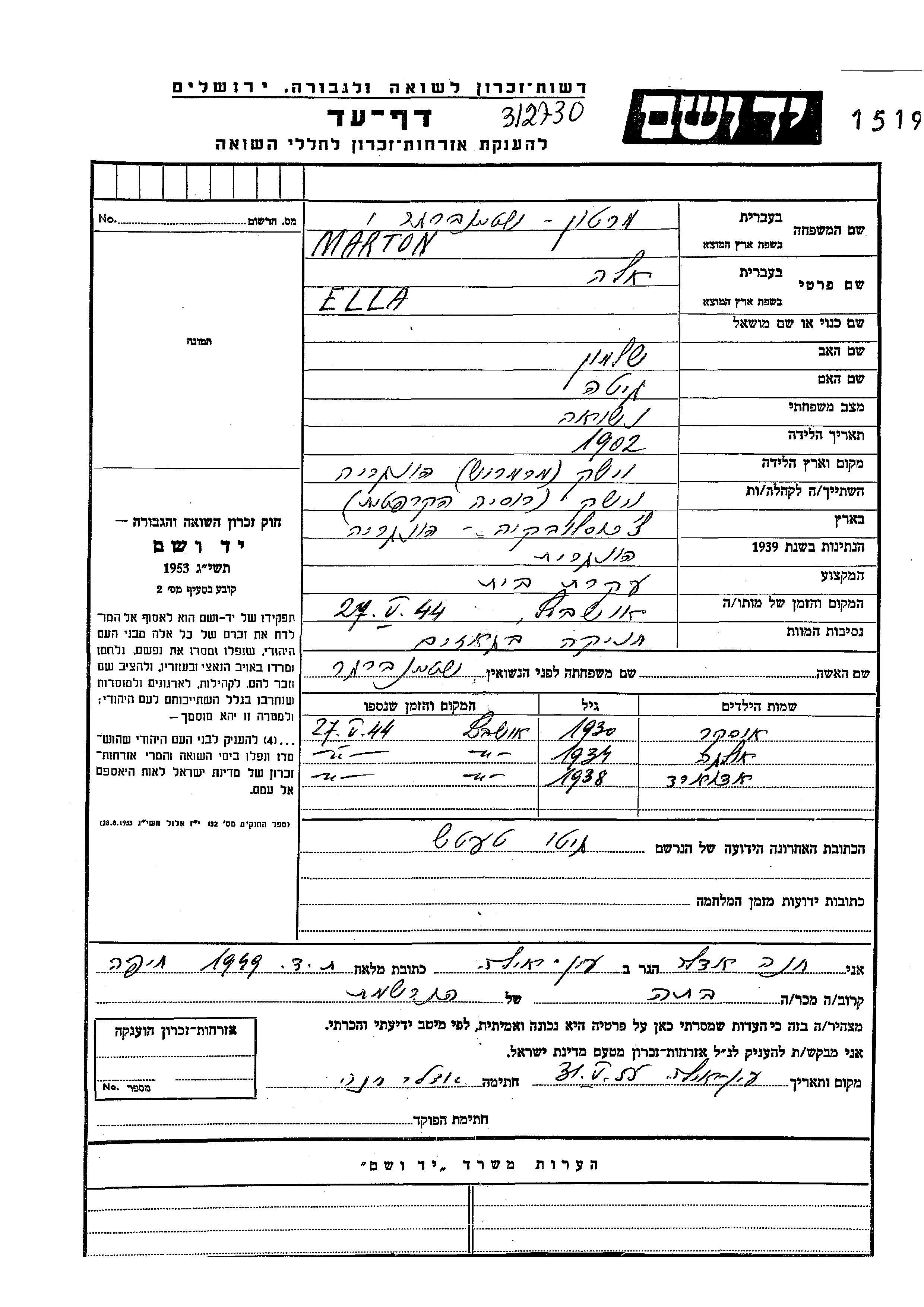 Recherche par nom du dépositeur de la Feuille de témoignage. Cette recherché indique aussi les noms de jeunes filles.