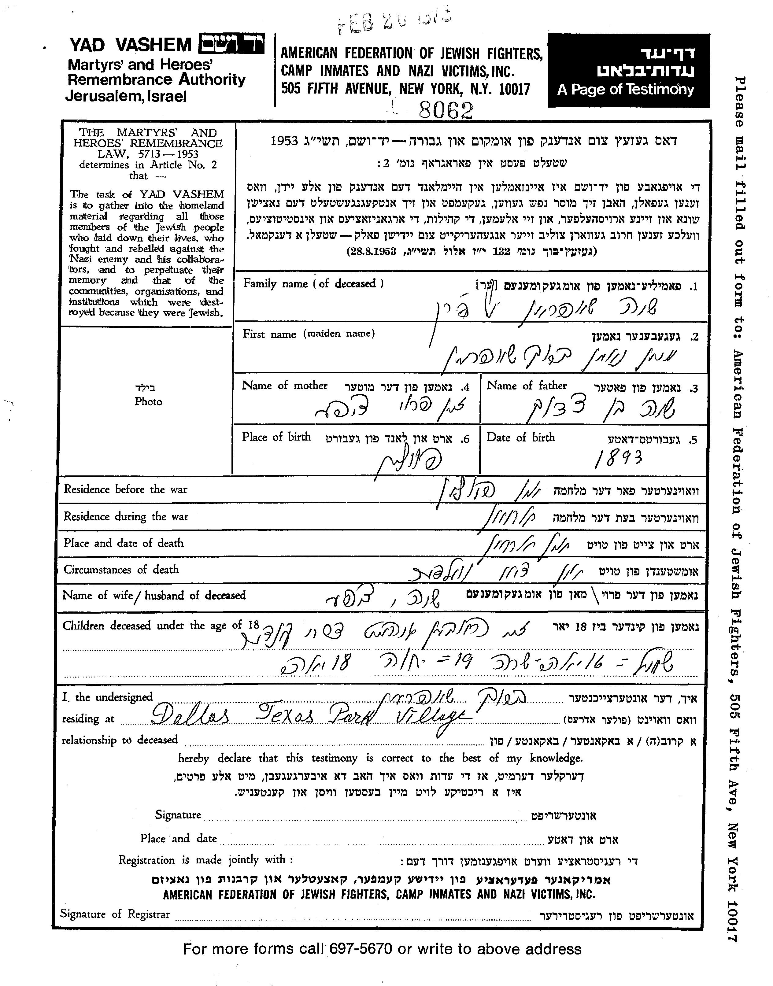 Yad Vashem - Pages of Testimony Names Memorial Collection