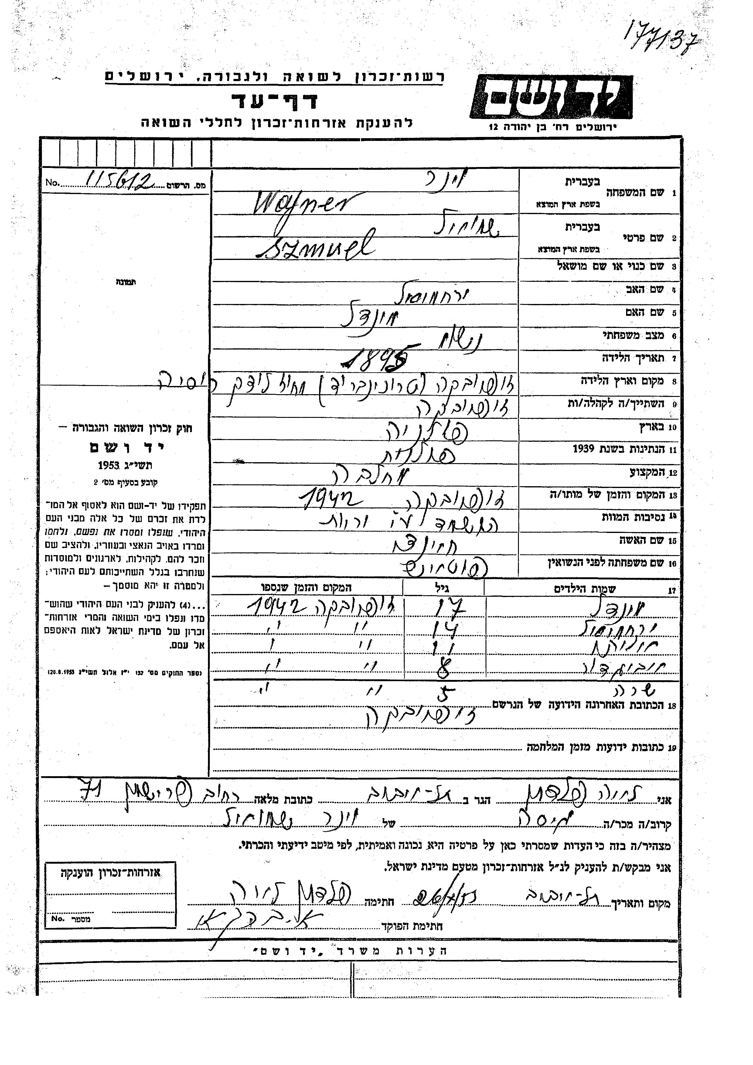 Yad Vashem - Pages of Testimony Names Memorial Collection