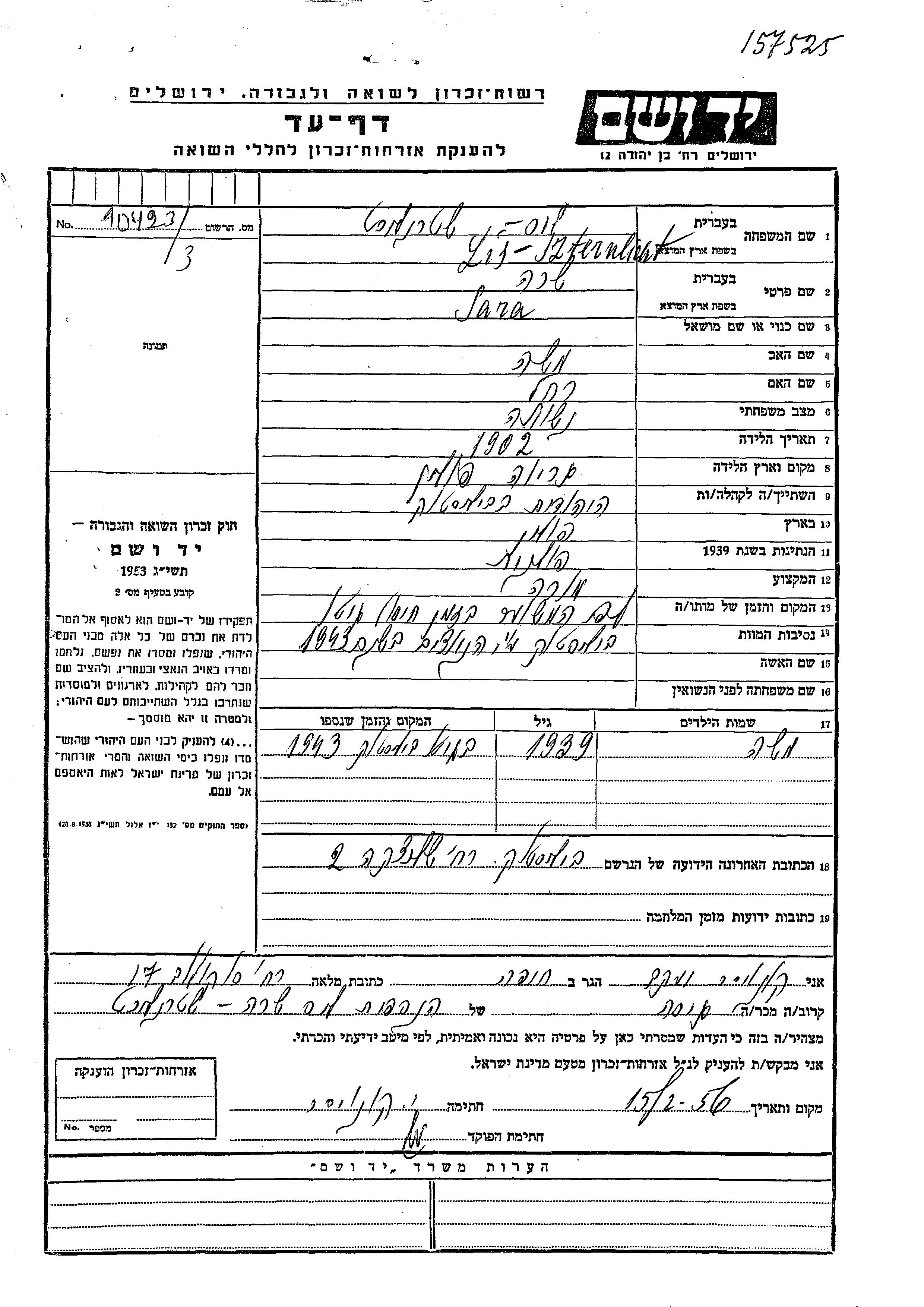 Yad Vashem - Pages of Testimony Names Memorial Collection