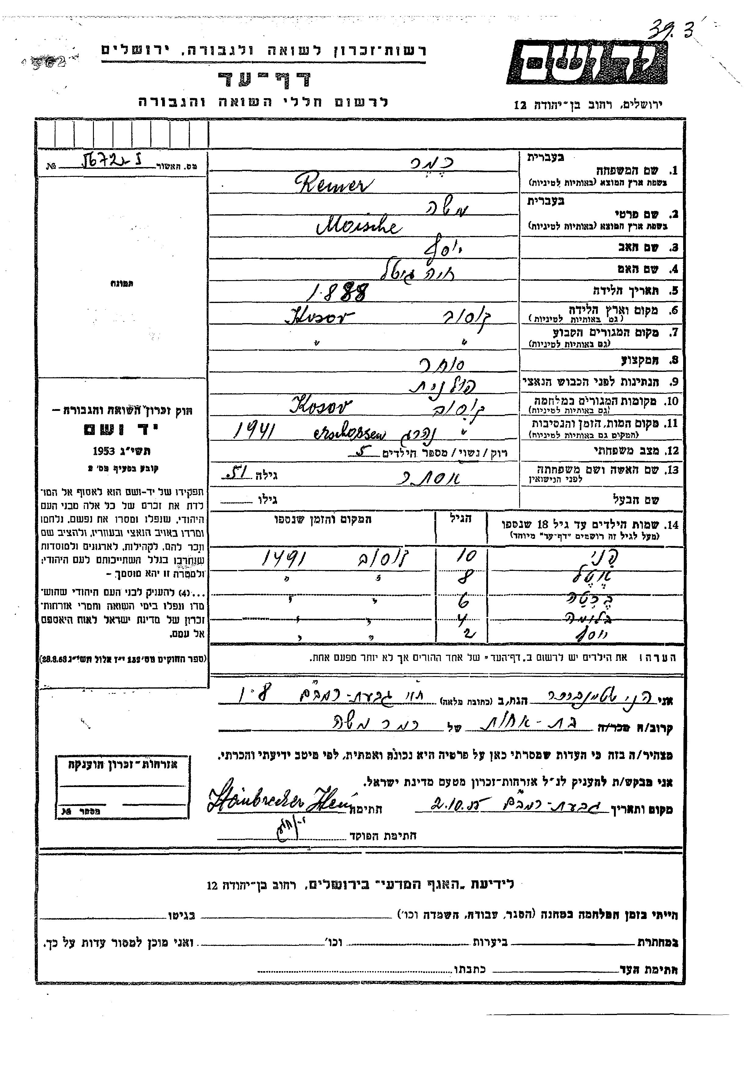 Yad Vashem - Pages of Testimony Names Memorial Collection