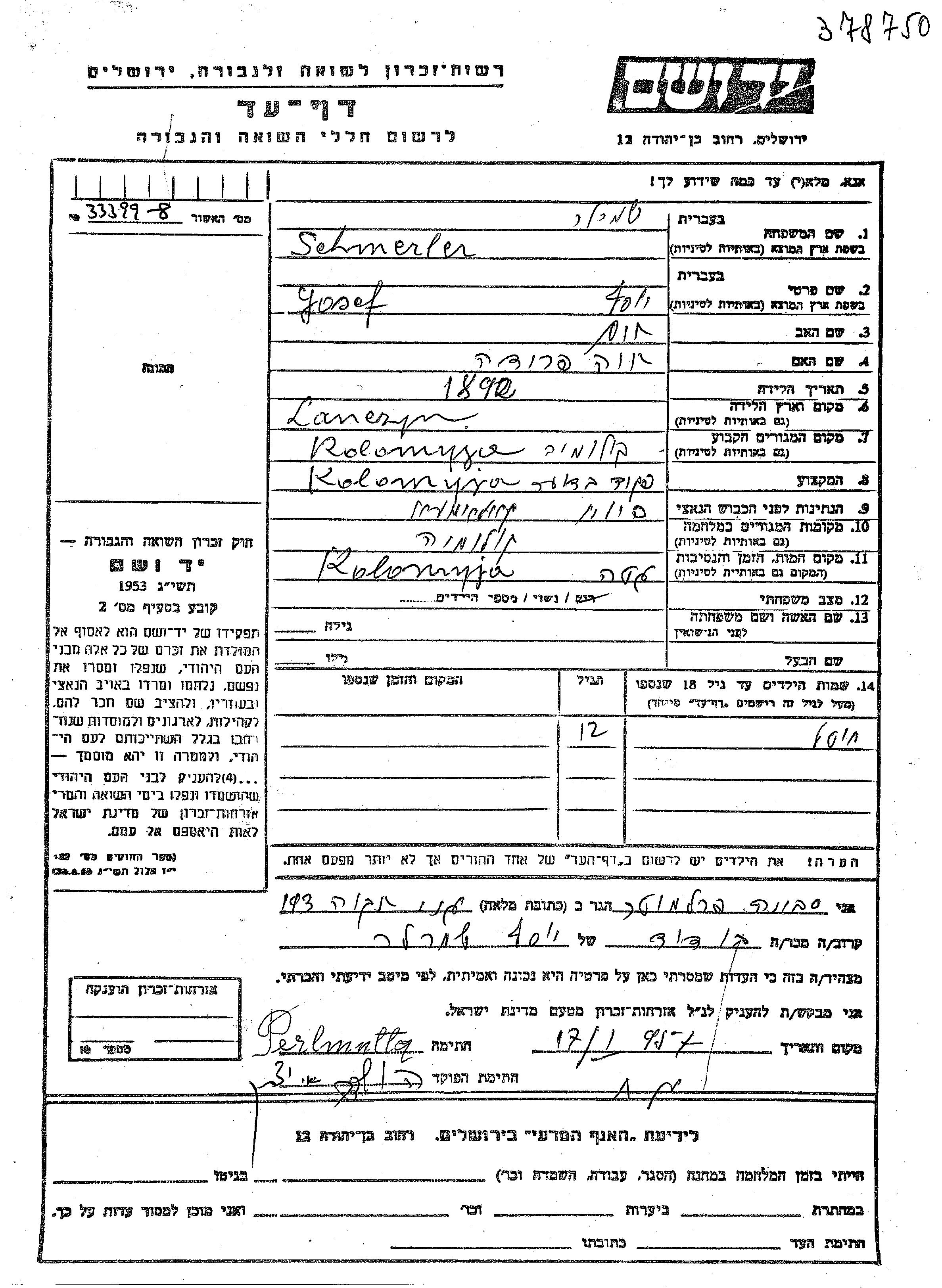 Yad Vashem - Pages of Testimony Names Memorial Collection