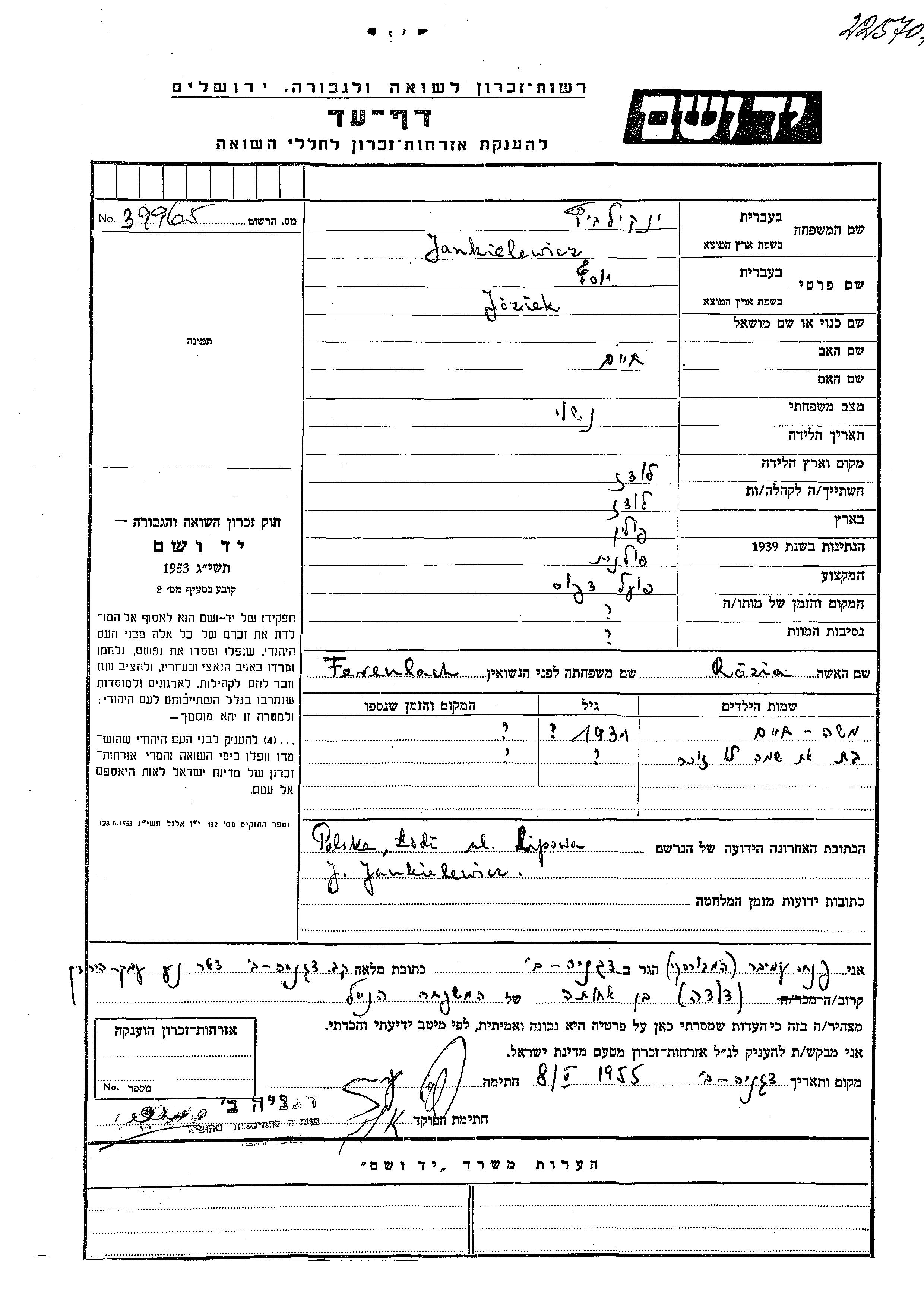 Recherche par date de la mort pendant la période de la Shoah: 1933-1945. Sélectionnez 'Exact'; dans la liste pour rechercher l'année exacte, ou sélectionner '+/- 2 ans'; ou '+/- 5 ans