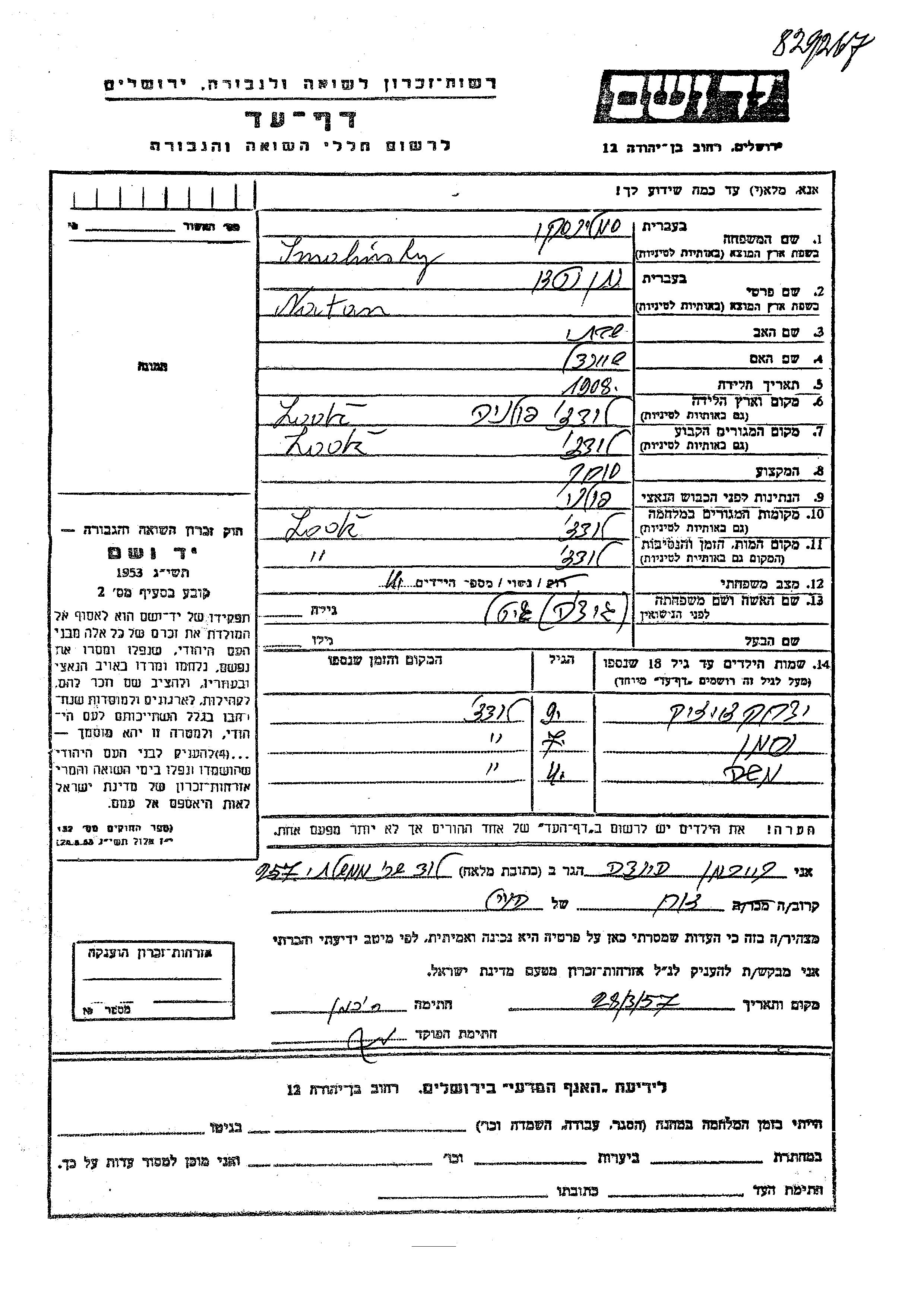 Yad Vashem - Pages of Testimony Names Memorial Collection