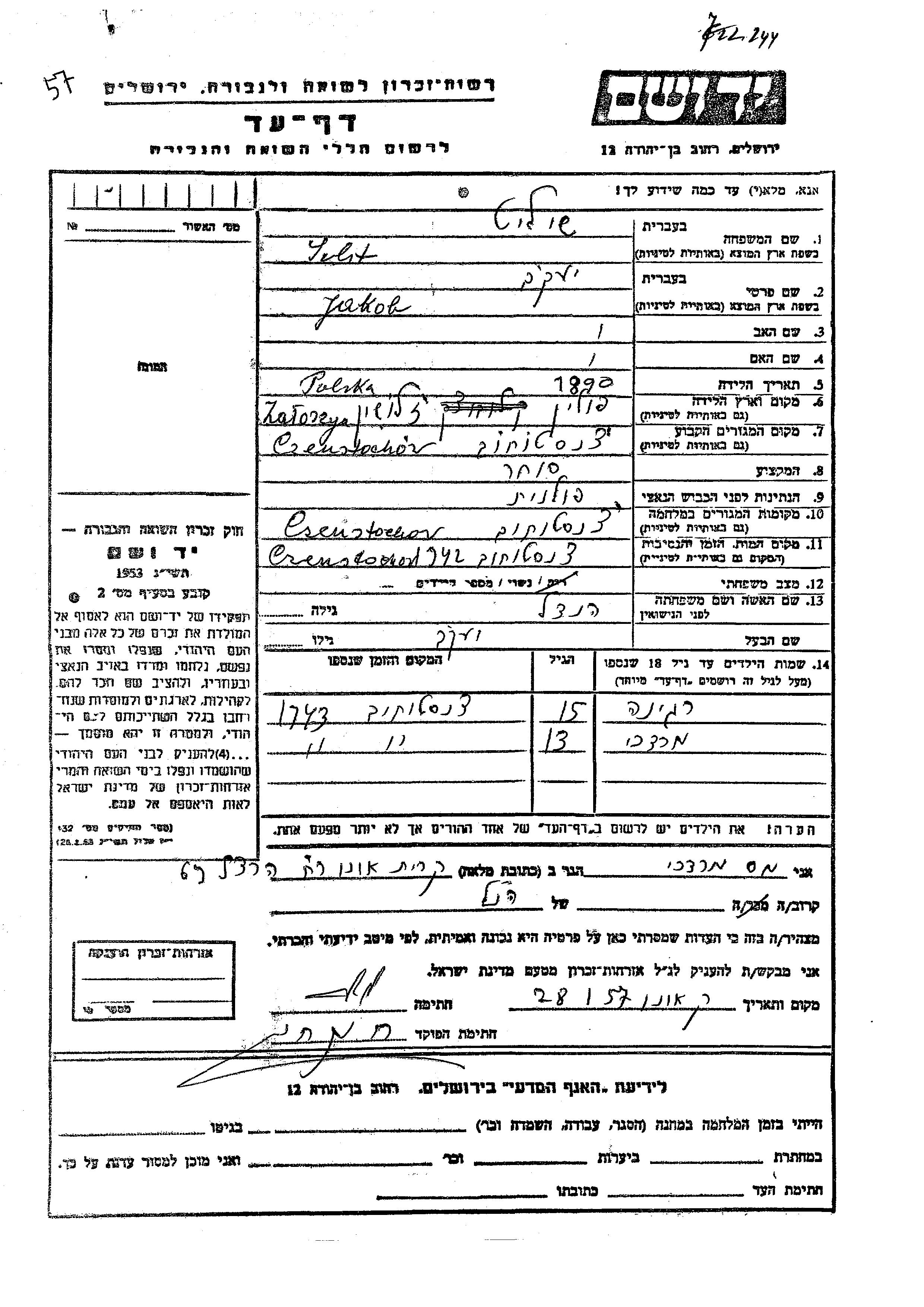 Yad Vashem - Pages of Testimony Names Memorial Collection