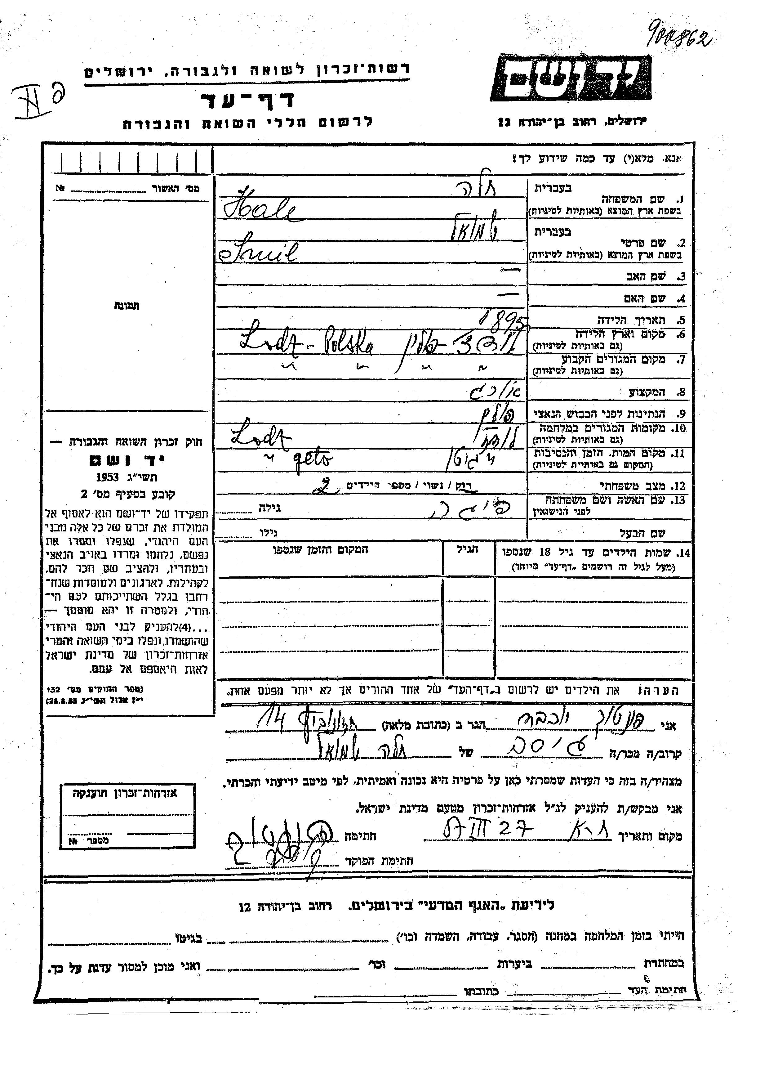 Yad Vashem - Pages of Testimony Names Memorial Collection