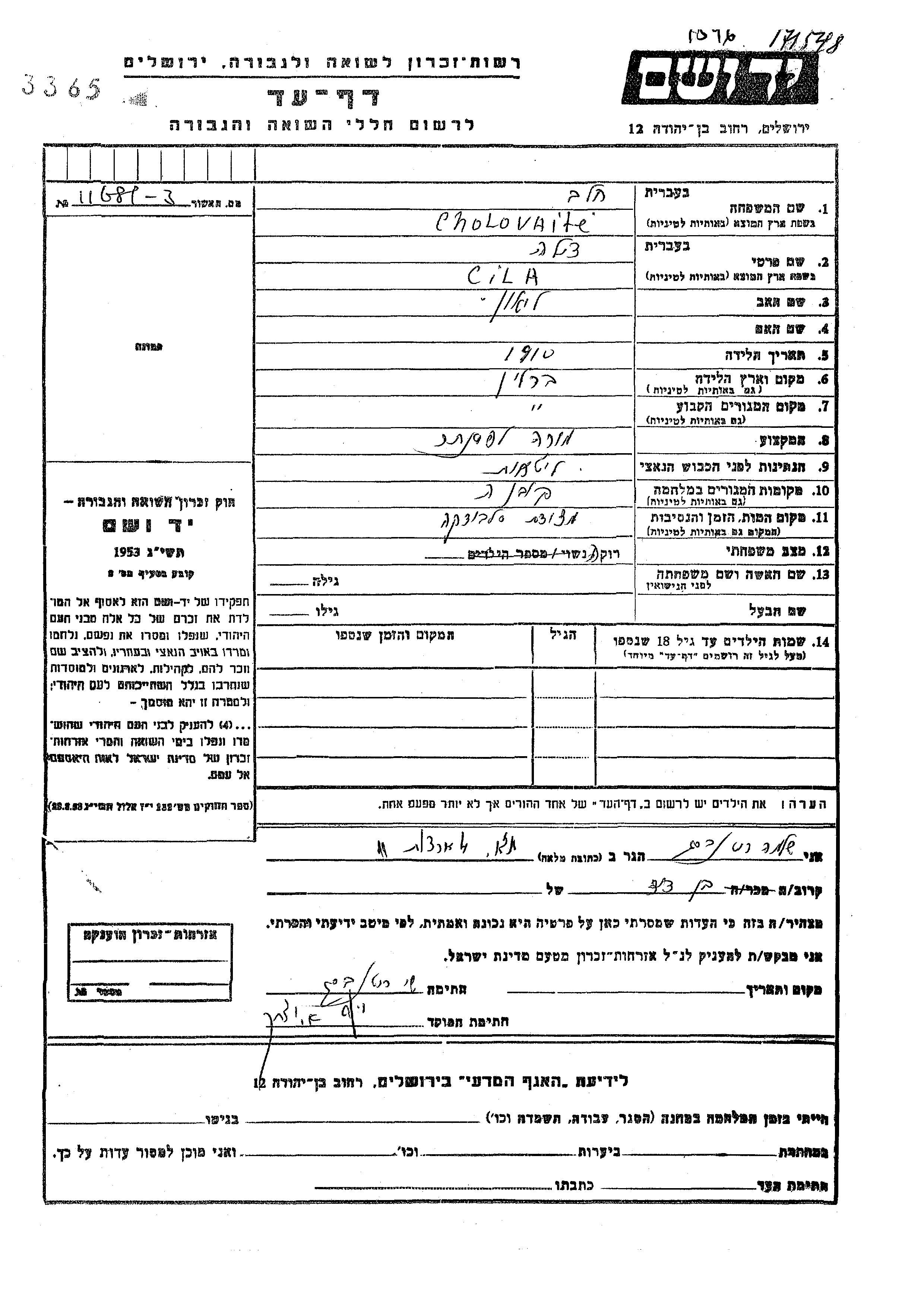 Yad Vashem - Pages of Testimony Names Memorial Collection