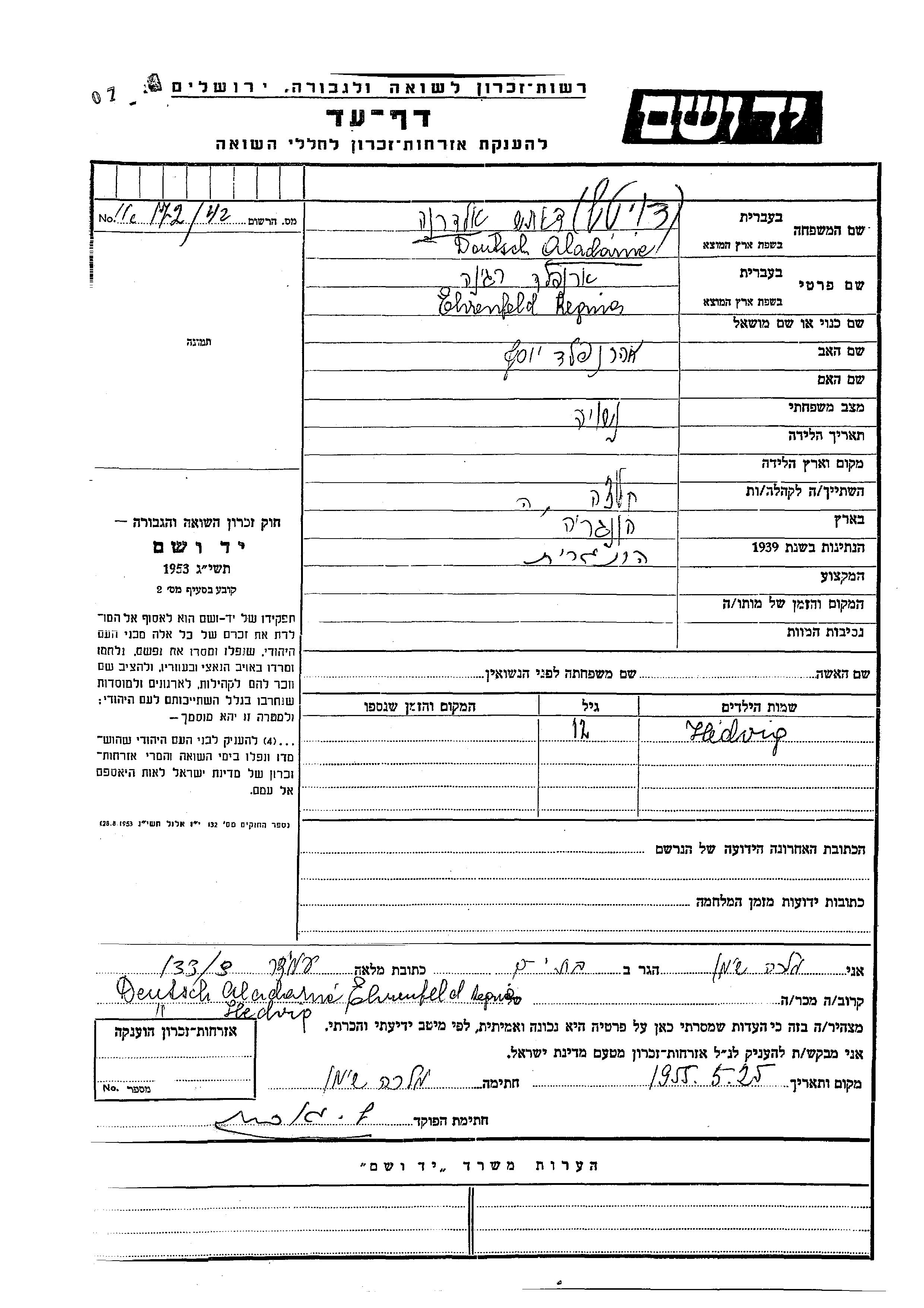 Yad Vashem - Pages of Testimony Names Memorial Collection