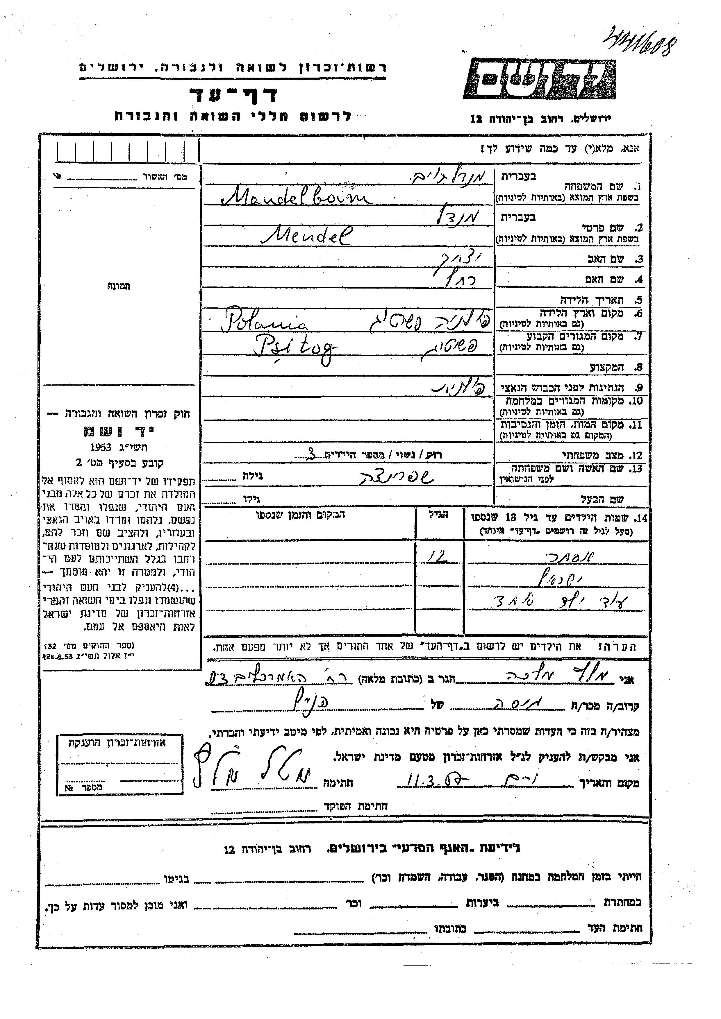 Yad Vashem - Pages of Testimony Names Memorial Collection