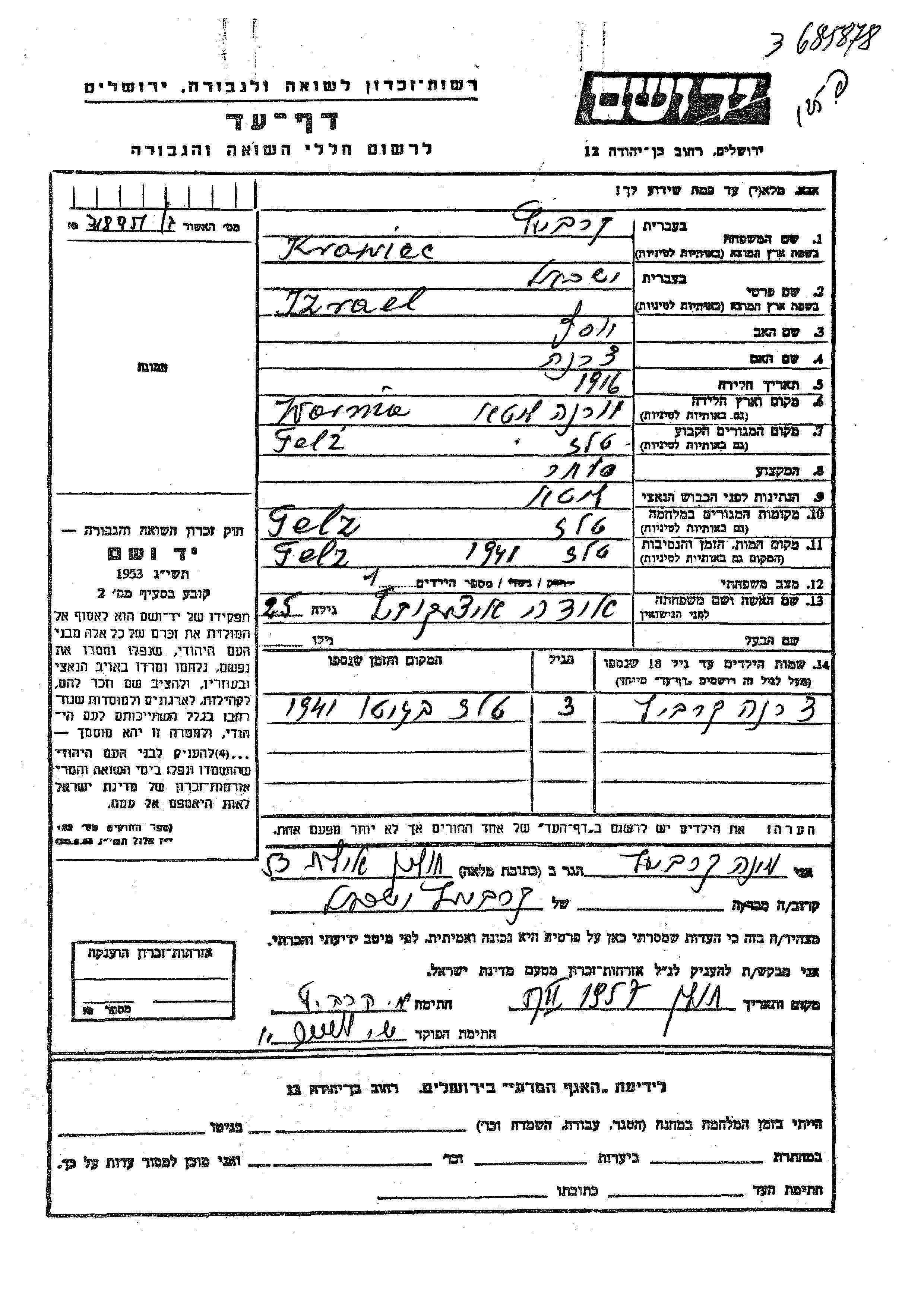 Yad Vashem - Pages of Testimony Names Memorial Collection