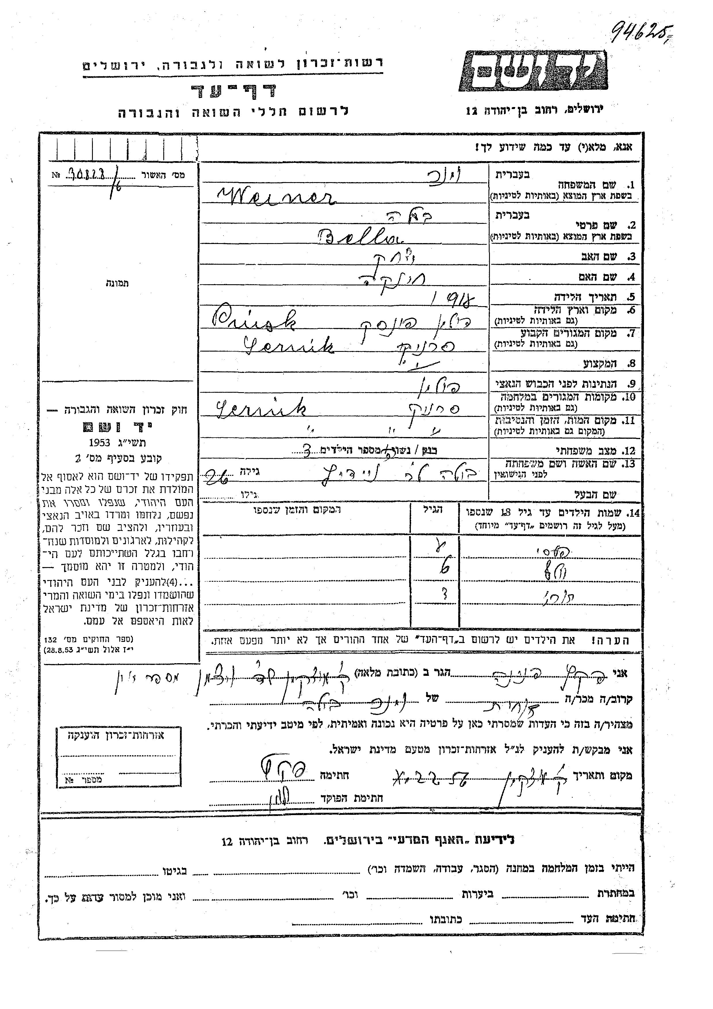 Yad Vashem - Pages of Testimony Names Memorial Collection