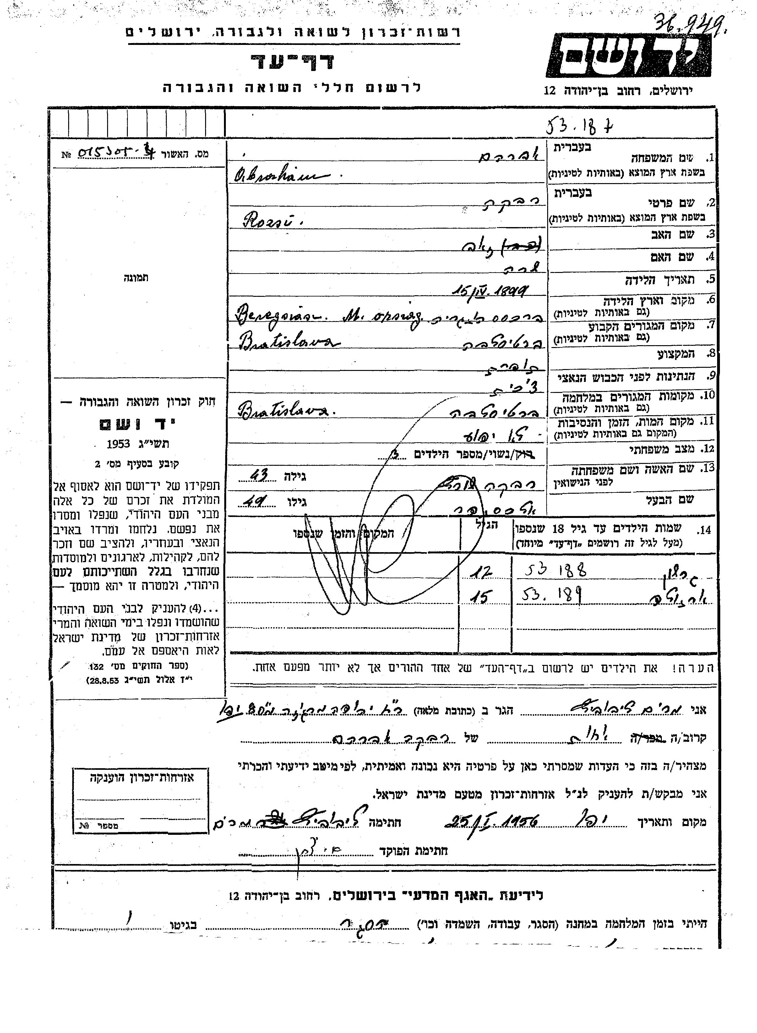 Yad Vashem - Pages of Testimony Names Memorial Collection