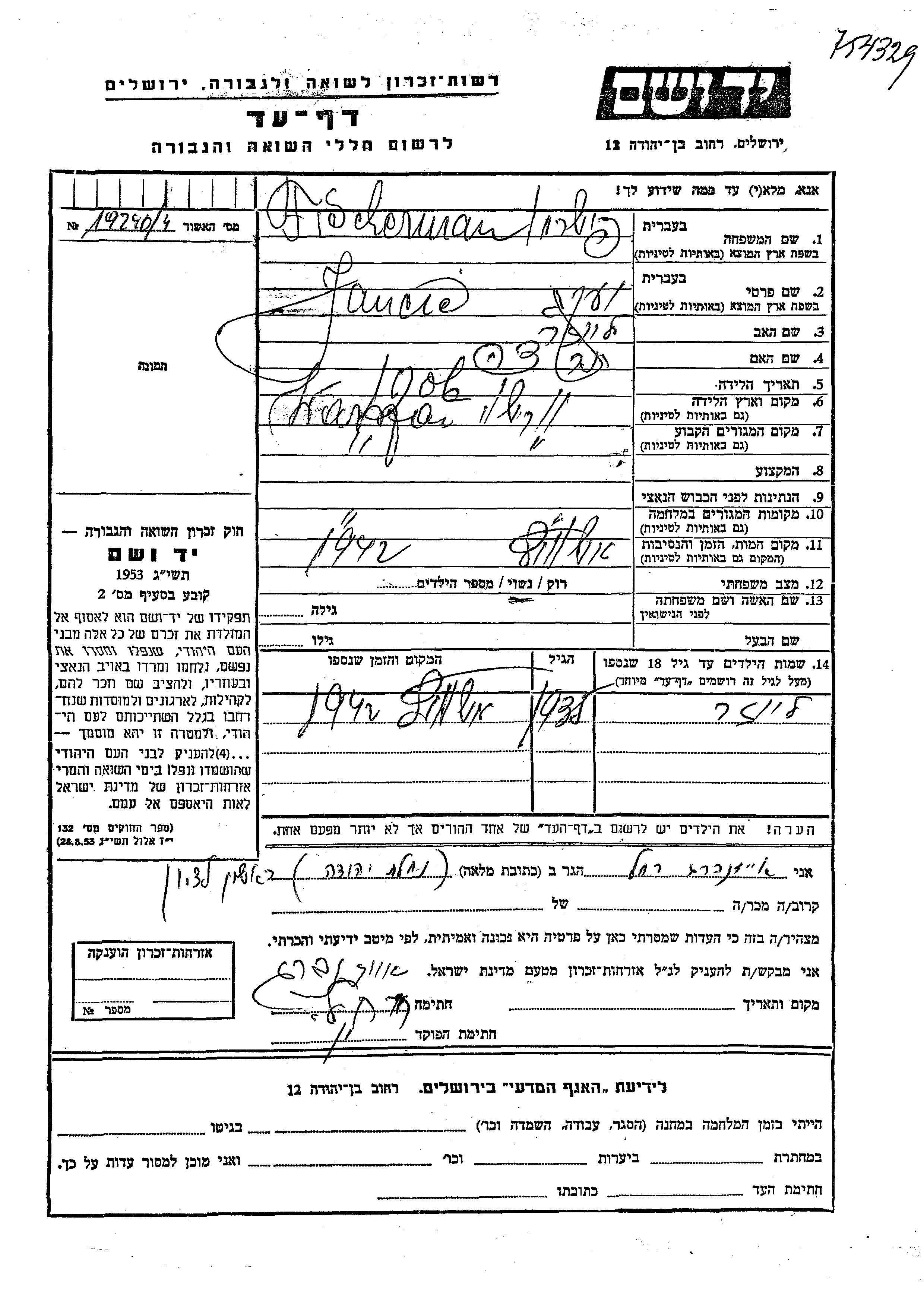 Yad Vashem - Pages of Testimony Names Memorial Collection