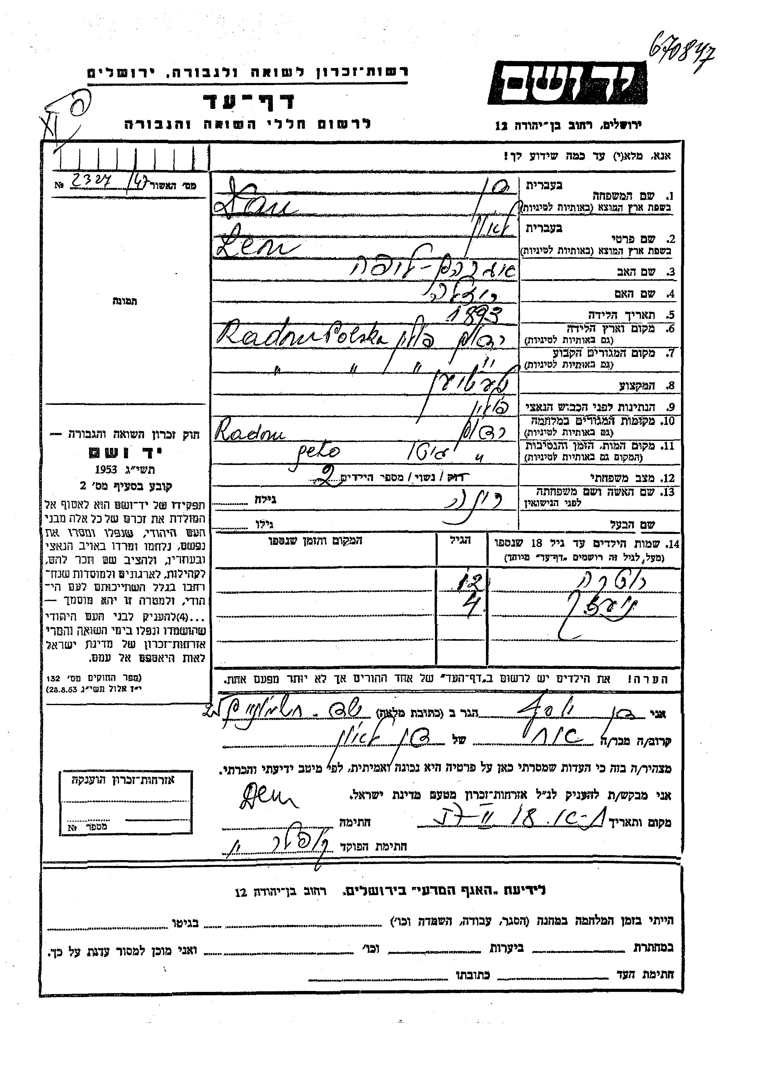 Yad Vashem - Pages of Testimony Names Memorial Collection