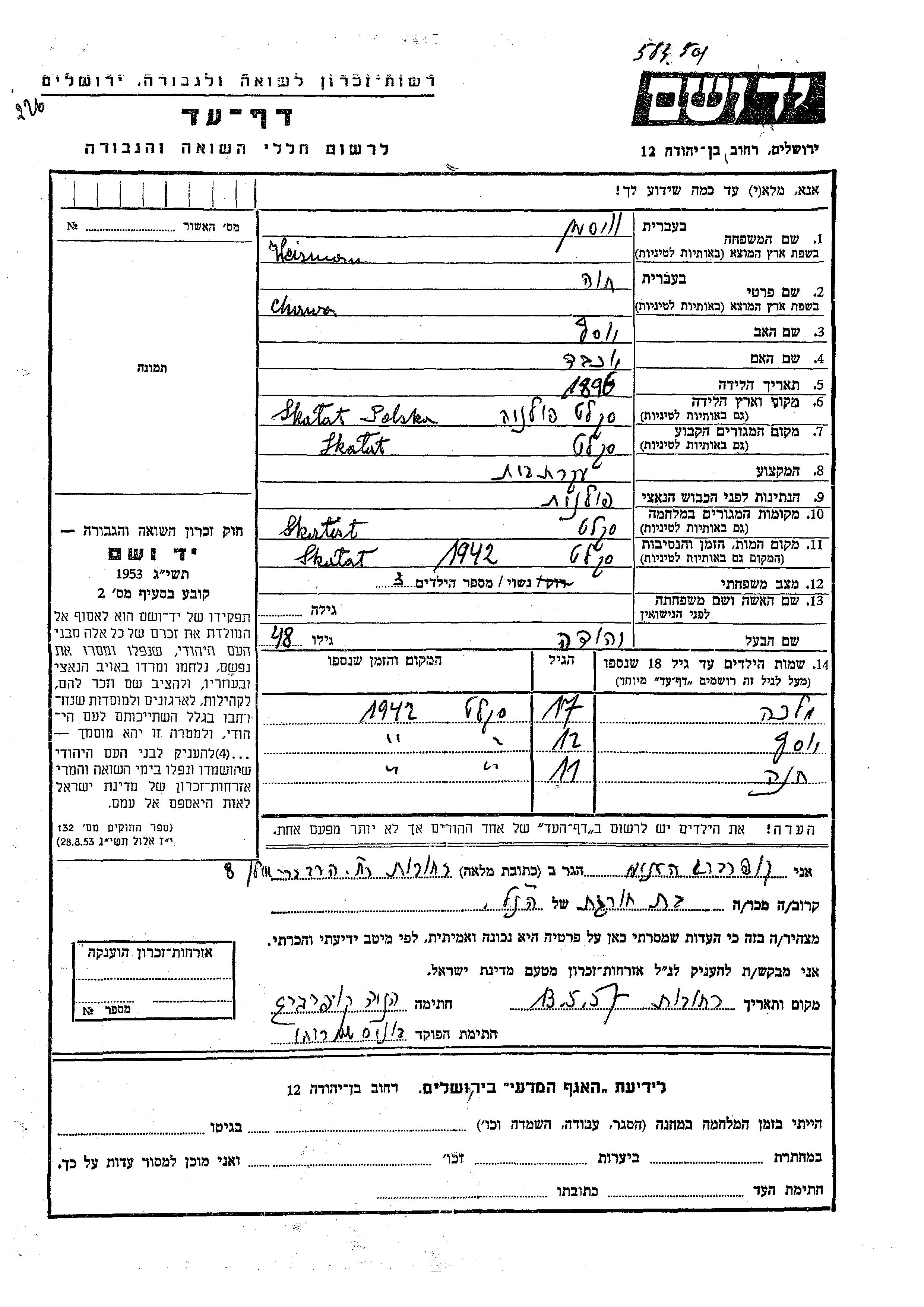 Yad Vashem - Pages of Testimony Names Memorial Collection