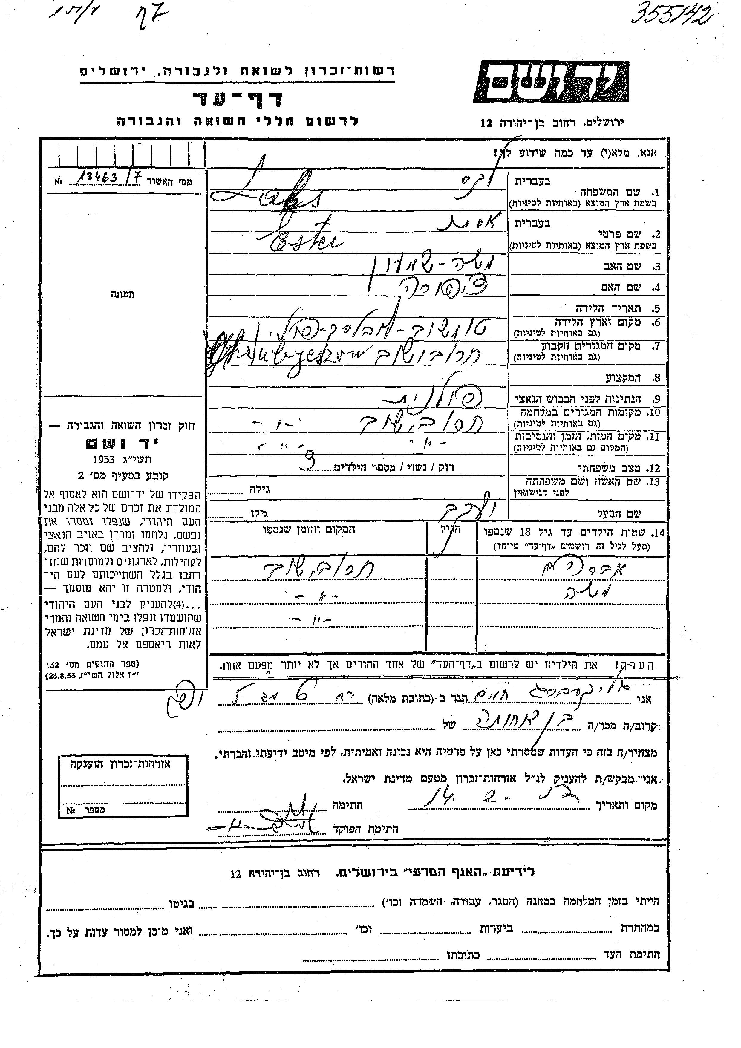 Yad Vashem - Pages of Testimony Names Memorial Collection