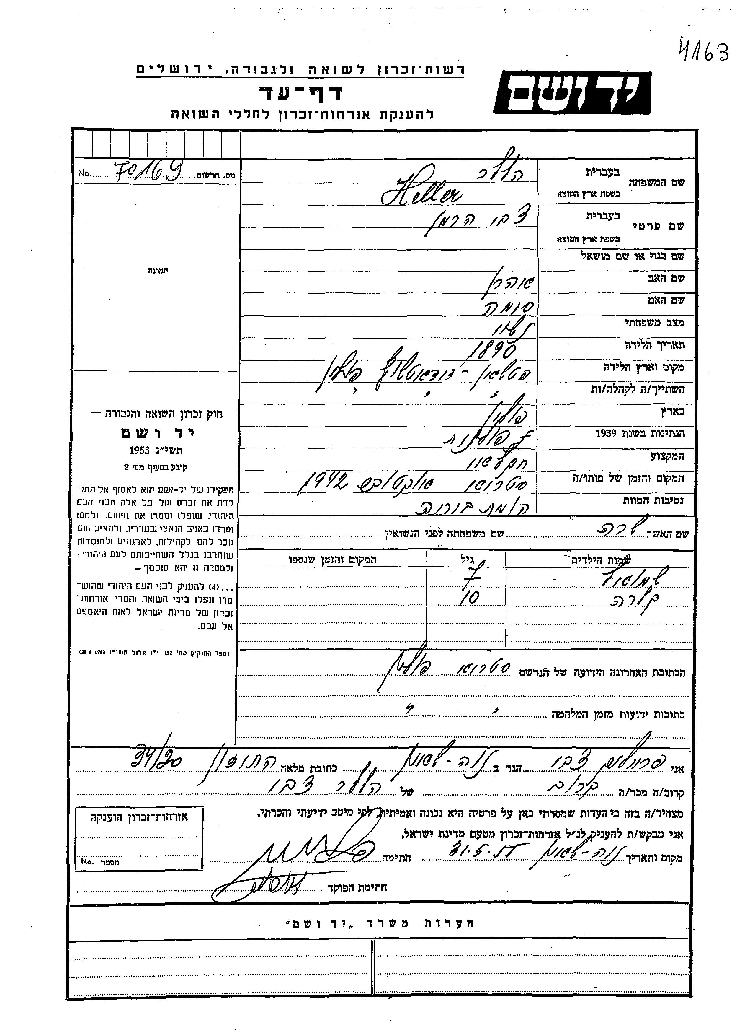 Yad Vashem - Pages of Testimony Names Memorial Collection