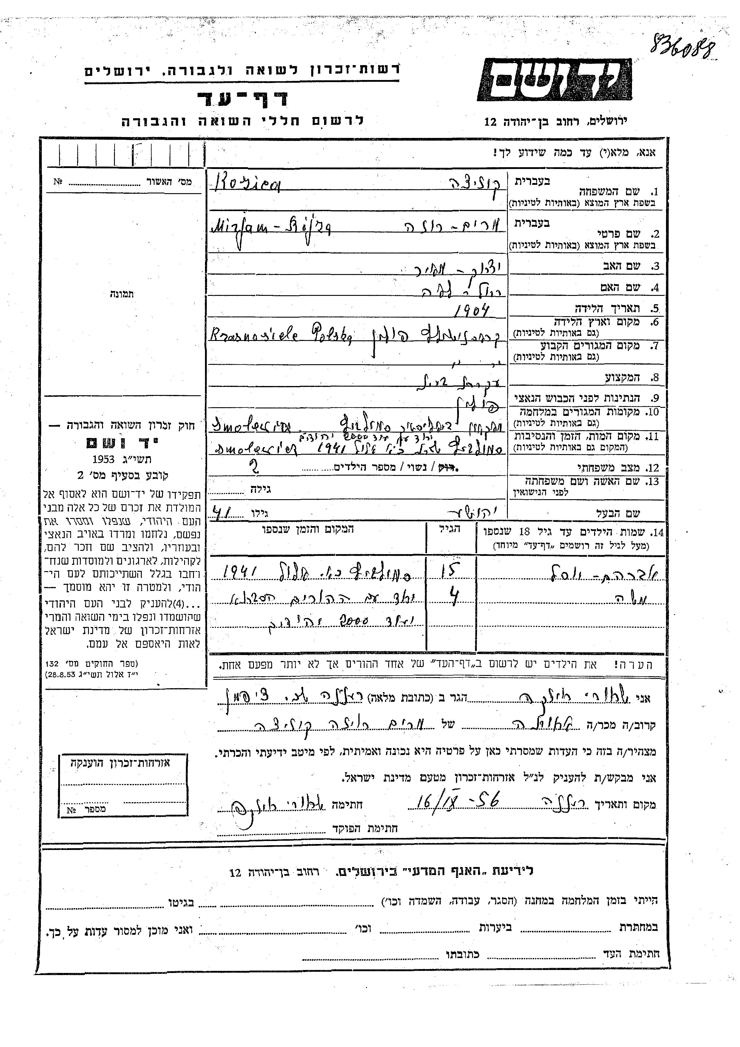 Yad Vashem - Pages of Testimony Names Memorial Collection